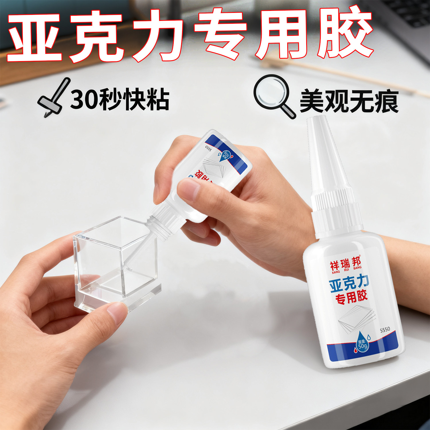 祥瑞邦亚克力专用胶强力粘亚克力板PMMA有机玻璃鱼缸胶修补胶PLA PC板专用粘合剂透明无影无痕胶亚克力胶水