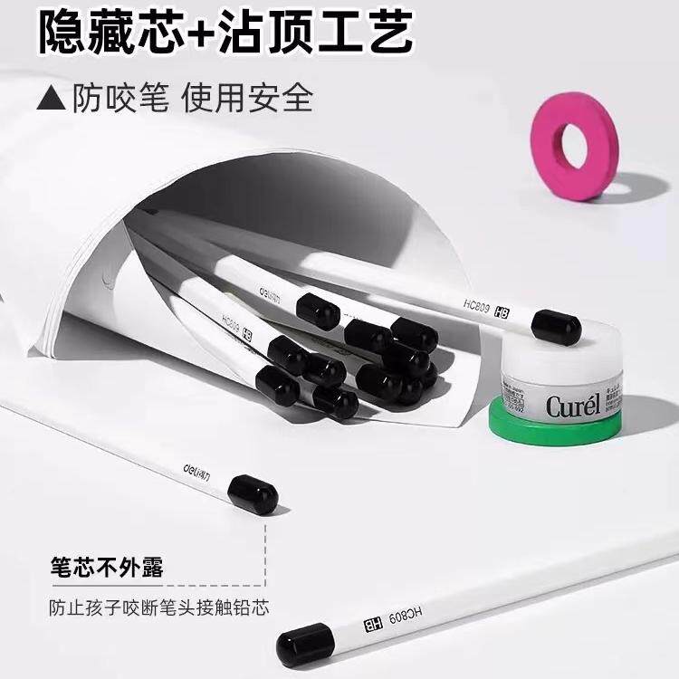 得力纽赛白杆铅笔小学生hb无毒一二年级专用2B考试练字笔高端黑木