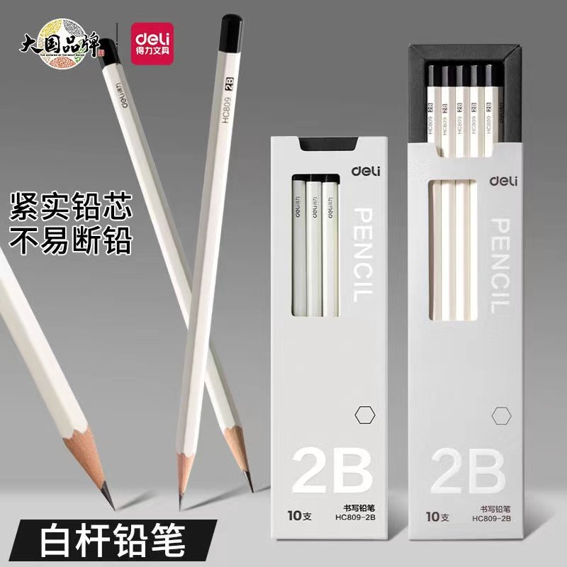 得力小白杆铅笔小学生无毒2B考试专用涂卡笔HB初学者练字笔高颜值