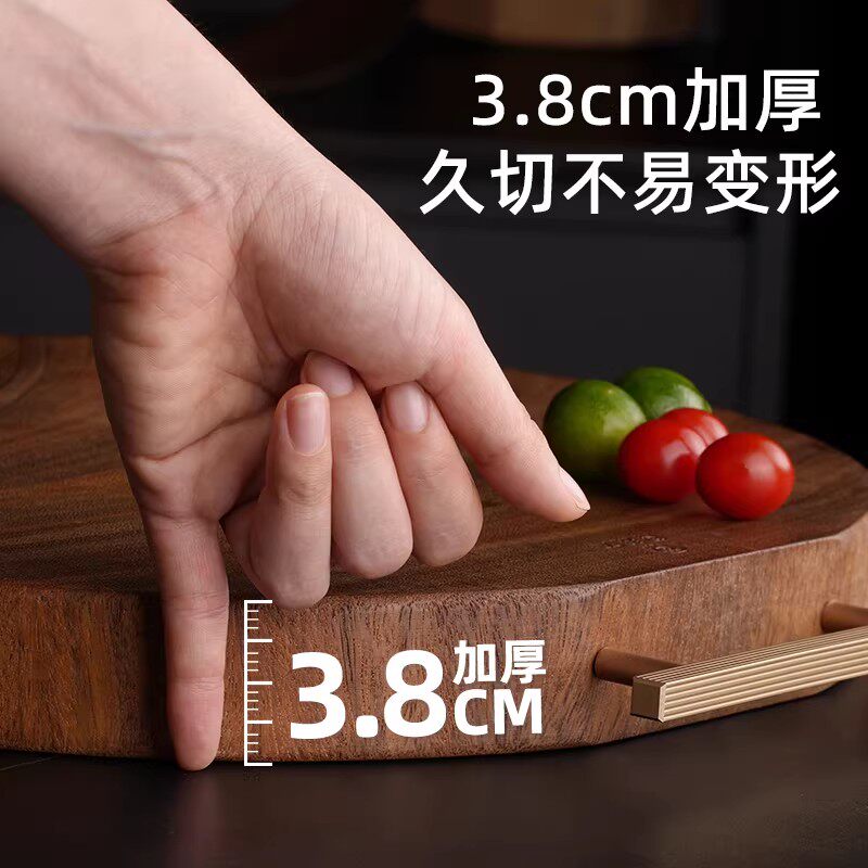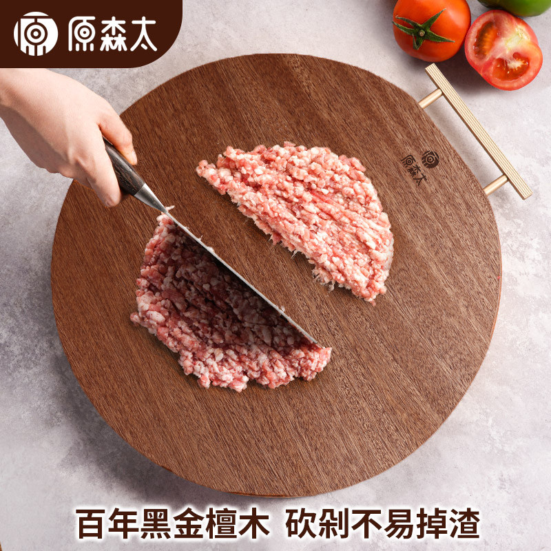 原森太圆形菜板防霉抗菌家用黑金檀木整木砧板厨房案板实木切菜板