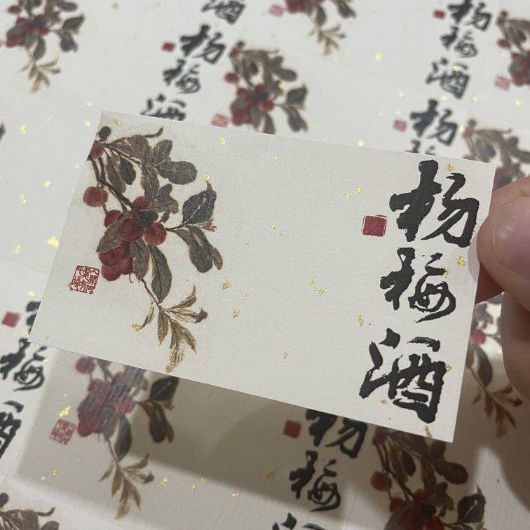 国画复古青梅酒杨梅酒桂花樱桃果酒泡酒不干胶酒标标签贴纸可定制