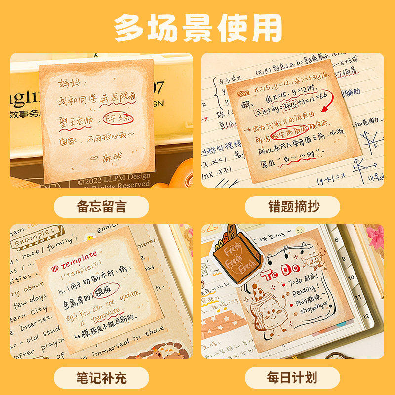 三年二班面包大王便利贴高颜值可粘贴便签纸学生专用可撕笔记贴