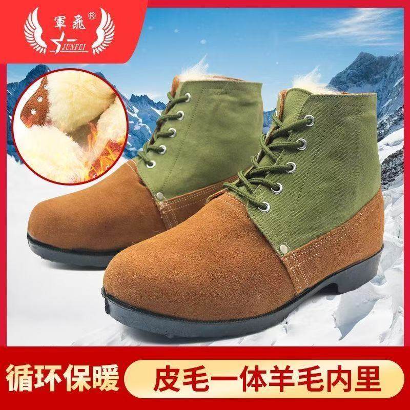 冬季羊毛棉靴男大头皮鞋棉鞋皮毛一体劳保翻毛保暖雪地靴牛皮防水