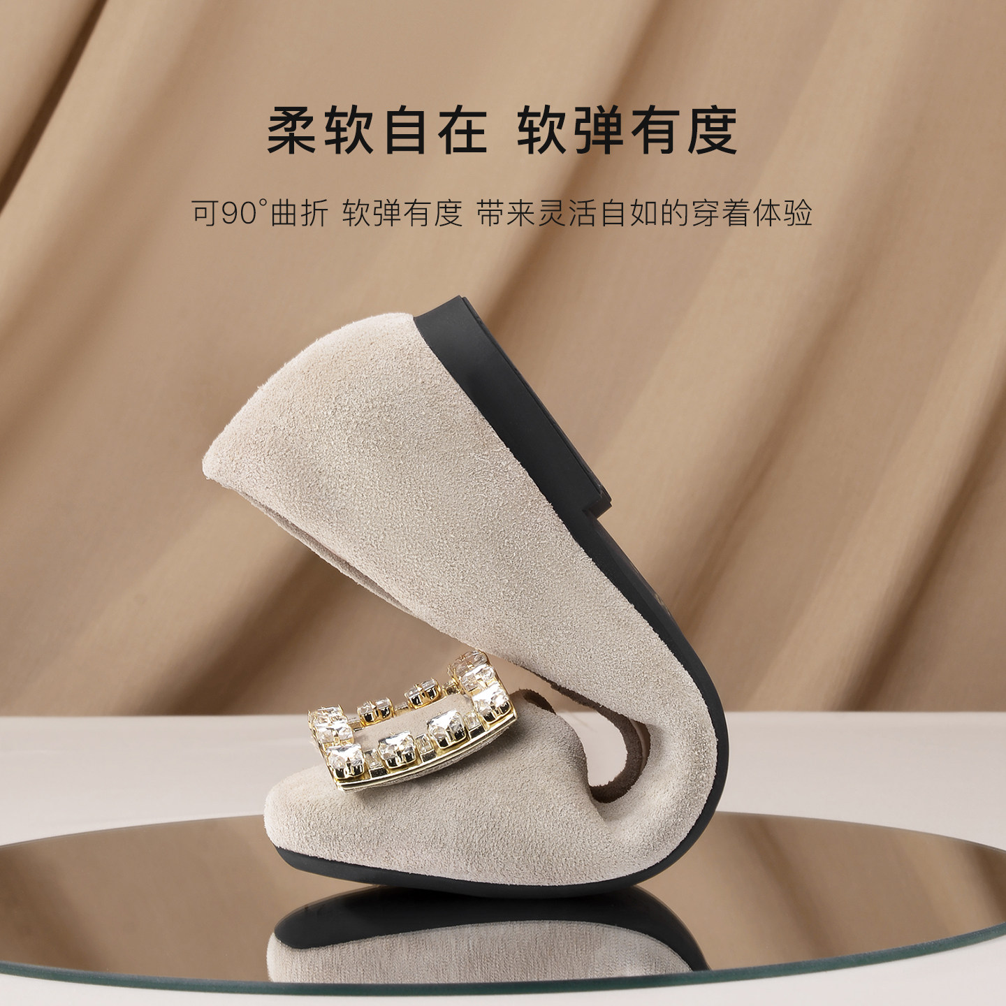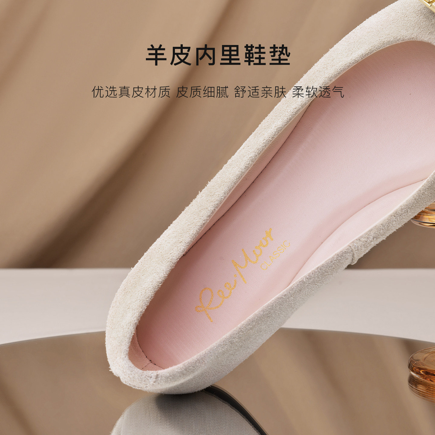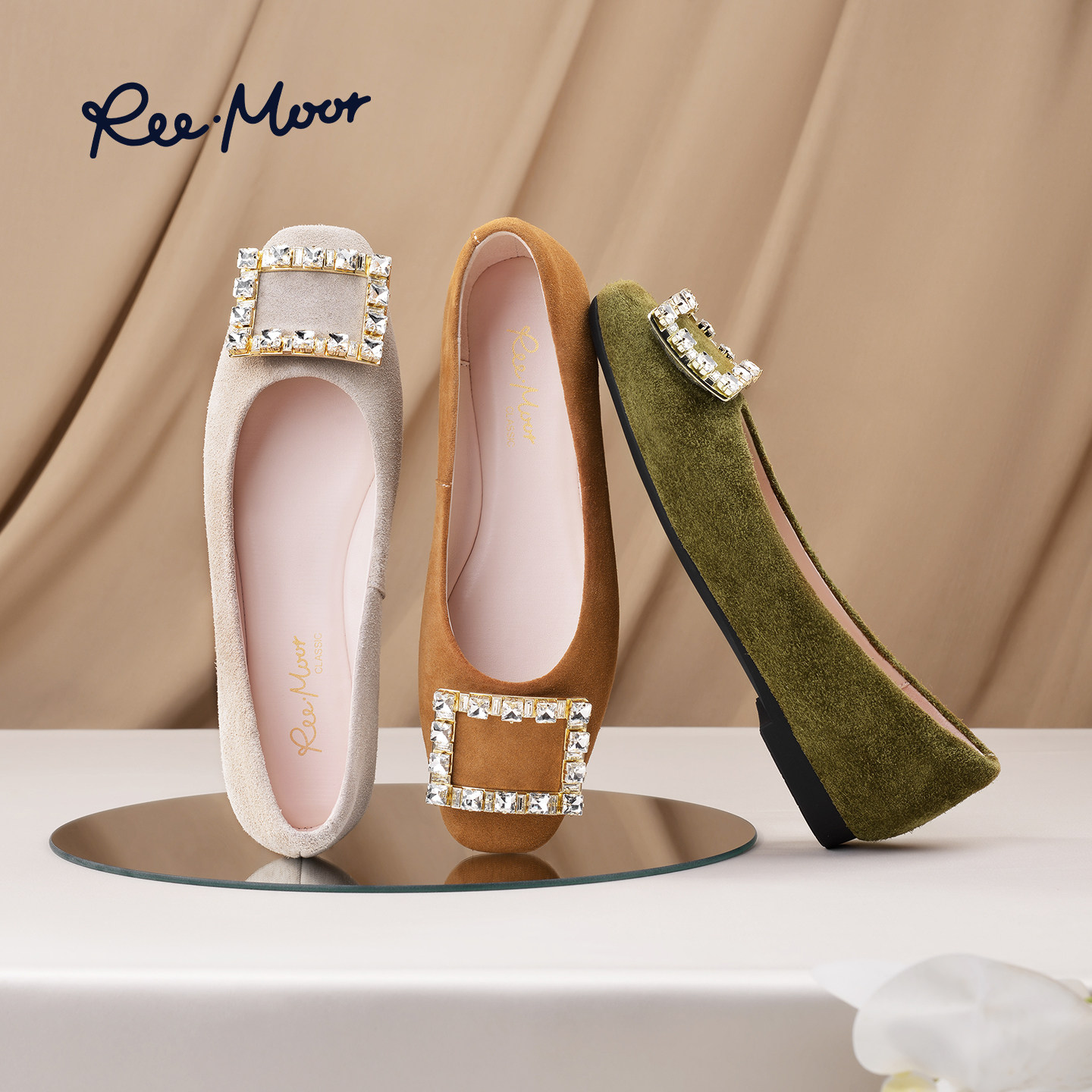 REEMOOR睿慕2025秋季新款法式水钻方扣尖头浅口单鞋平底鞋女鞋