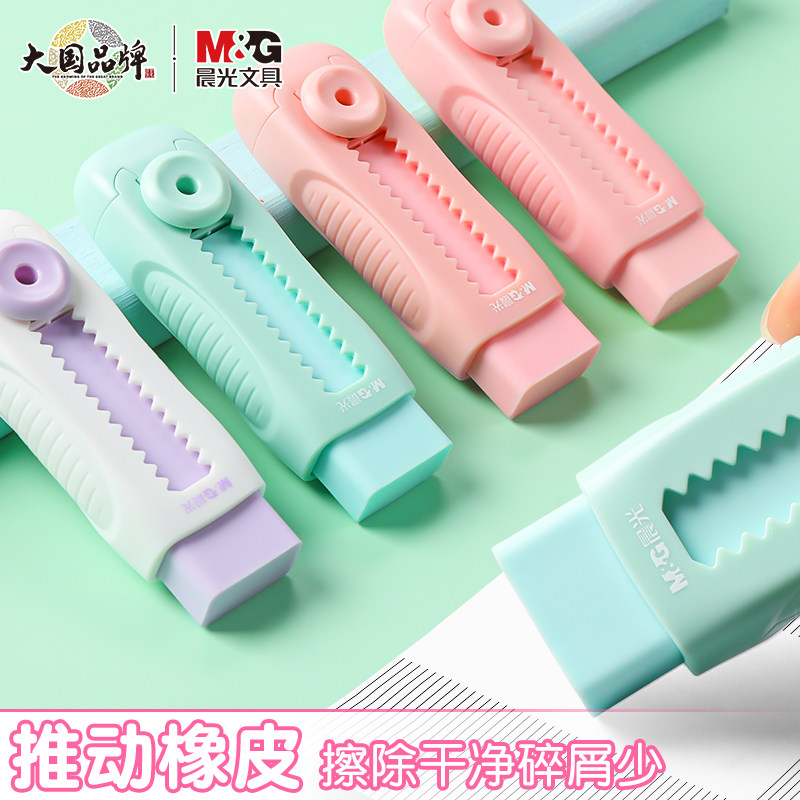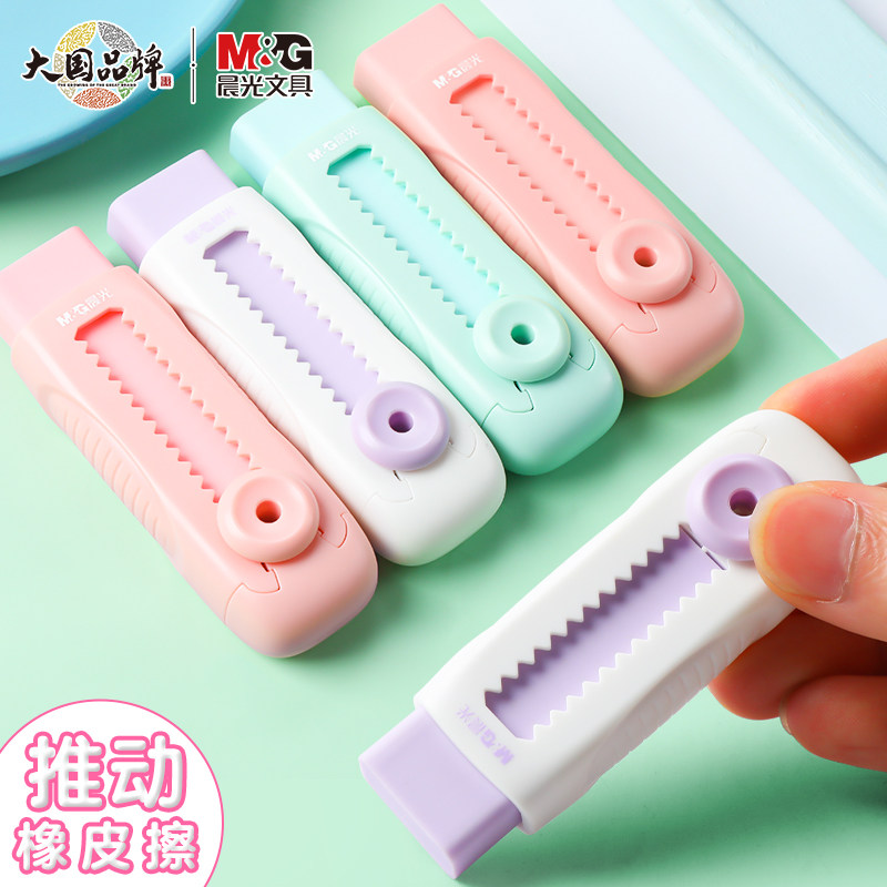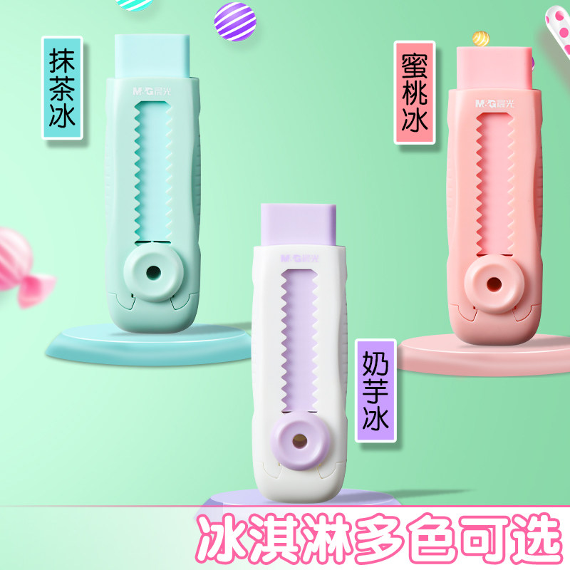 晨光冰淇淋彩色推拉橡皮小学生专用像皮擦不留痕无碎屑橡皮擦创意推动伸缩橡皮美术绘画铅笔儿童幼儿园象皮擦