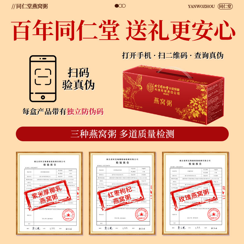 北京同仁堂内廷上用燕窝粥礼盒年货节过年送礼即食营养早餐走亲戚