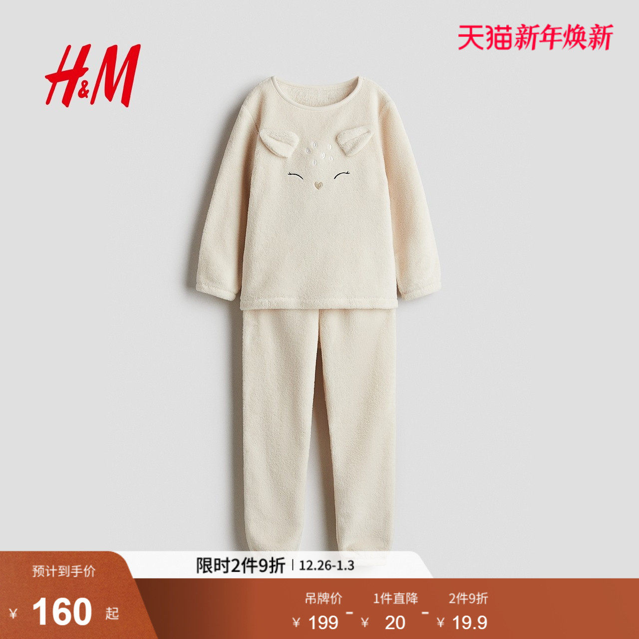 HM童装儿童女童套装2件式2025冬季新款贴花毛绒保暖睡衣1248674