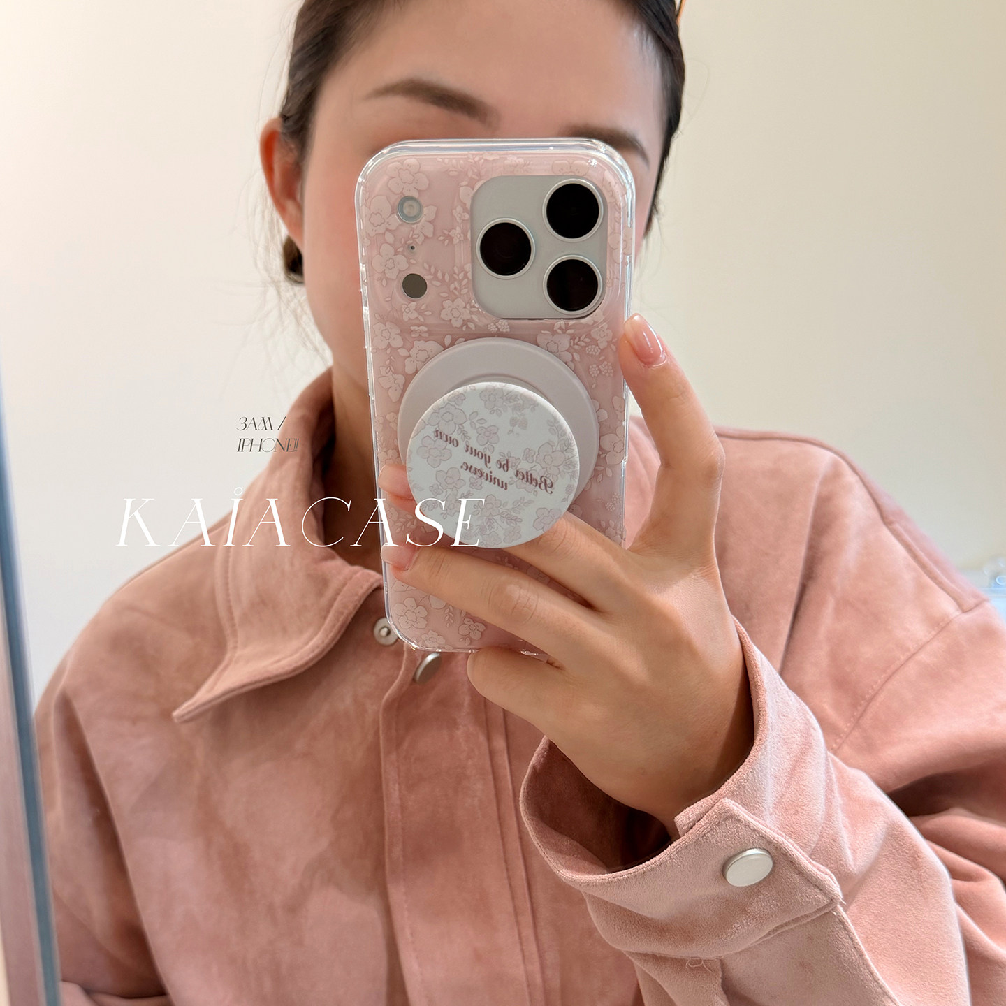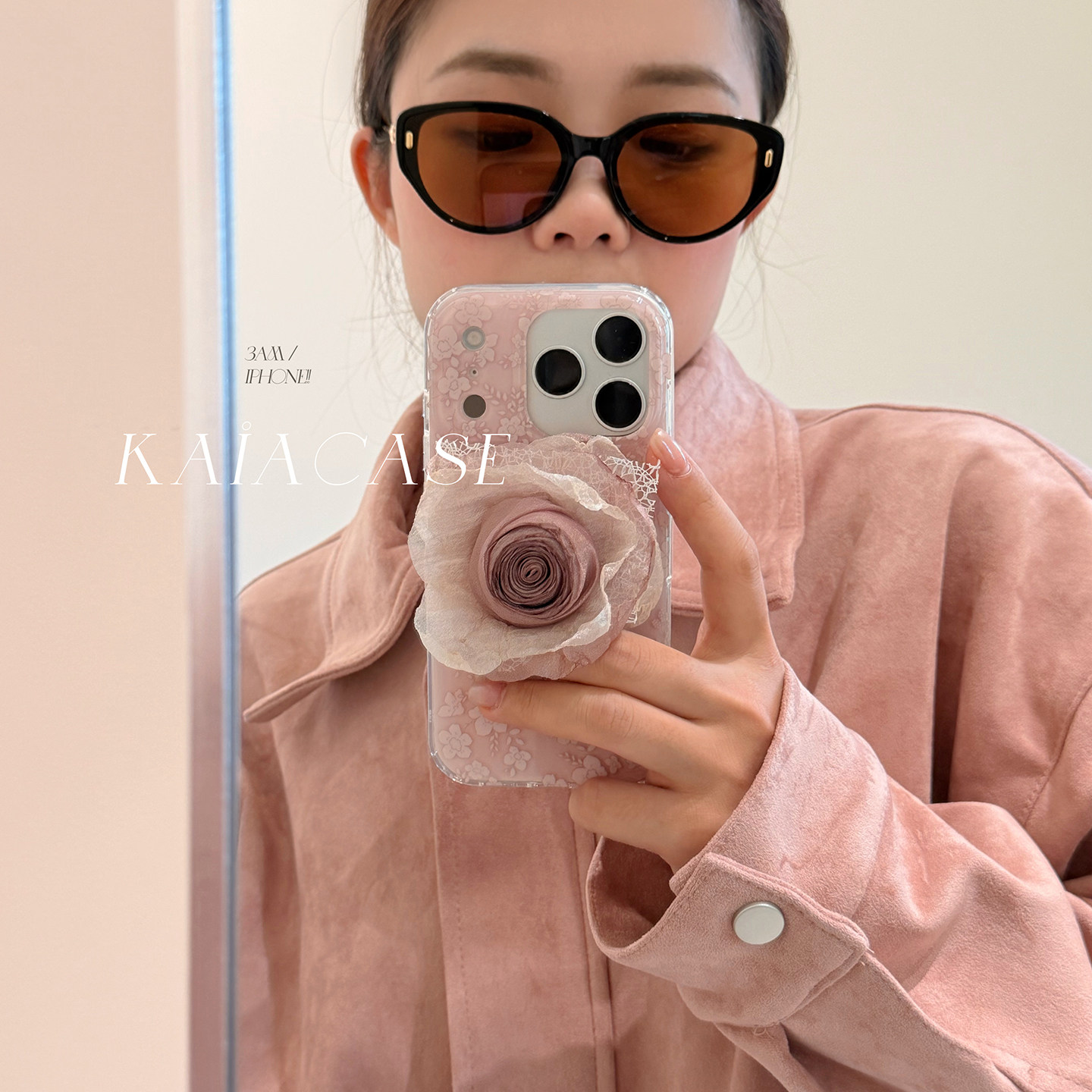 kaia 韩风文艺粉蕾丝玫瑰花朵适用苹果17promax手机壳iphone16pro新款15女14pro磁吸支架15pro全包防摔手机套