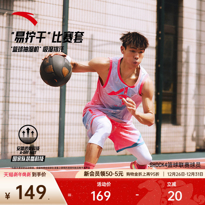 安踏SHOCK4丨篮球服比赛套装男士夏季无袖背心运动短裤152431201
