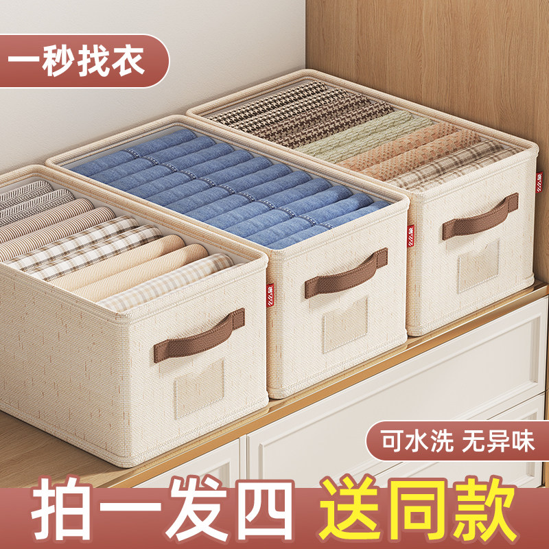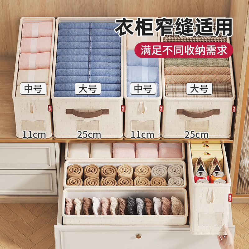 棉麻衣柜分层神器衣服收纳箱水洗家用裤子整理盒筐布艺折叠储物箱