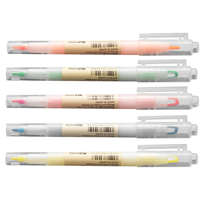 无印良品荧光笔muji学生勾书双头划重点标记套装按压按动荧光色笔