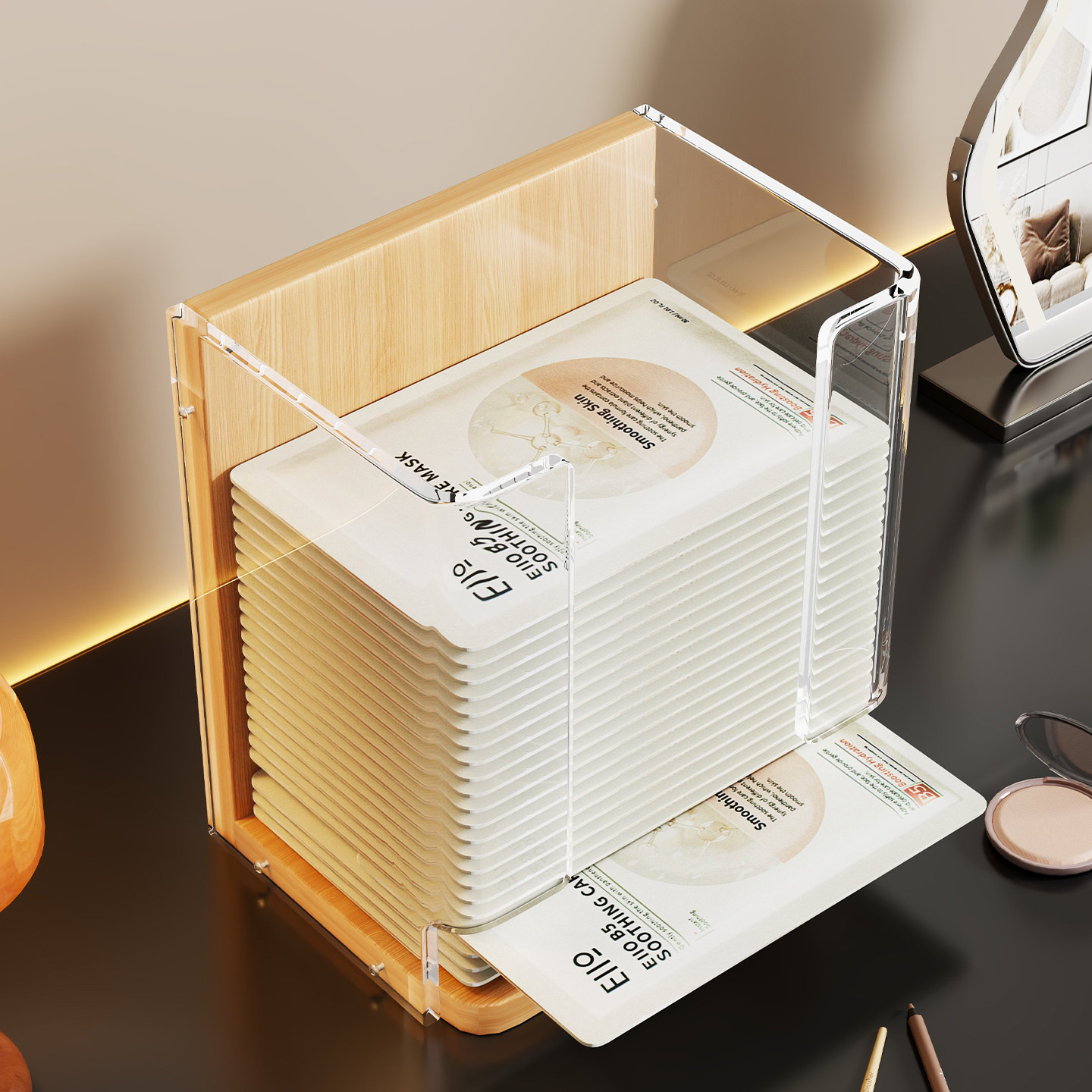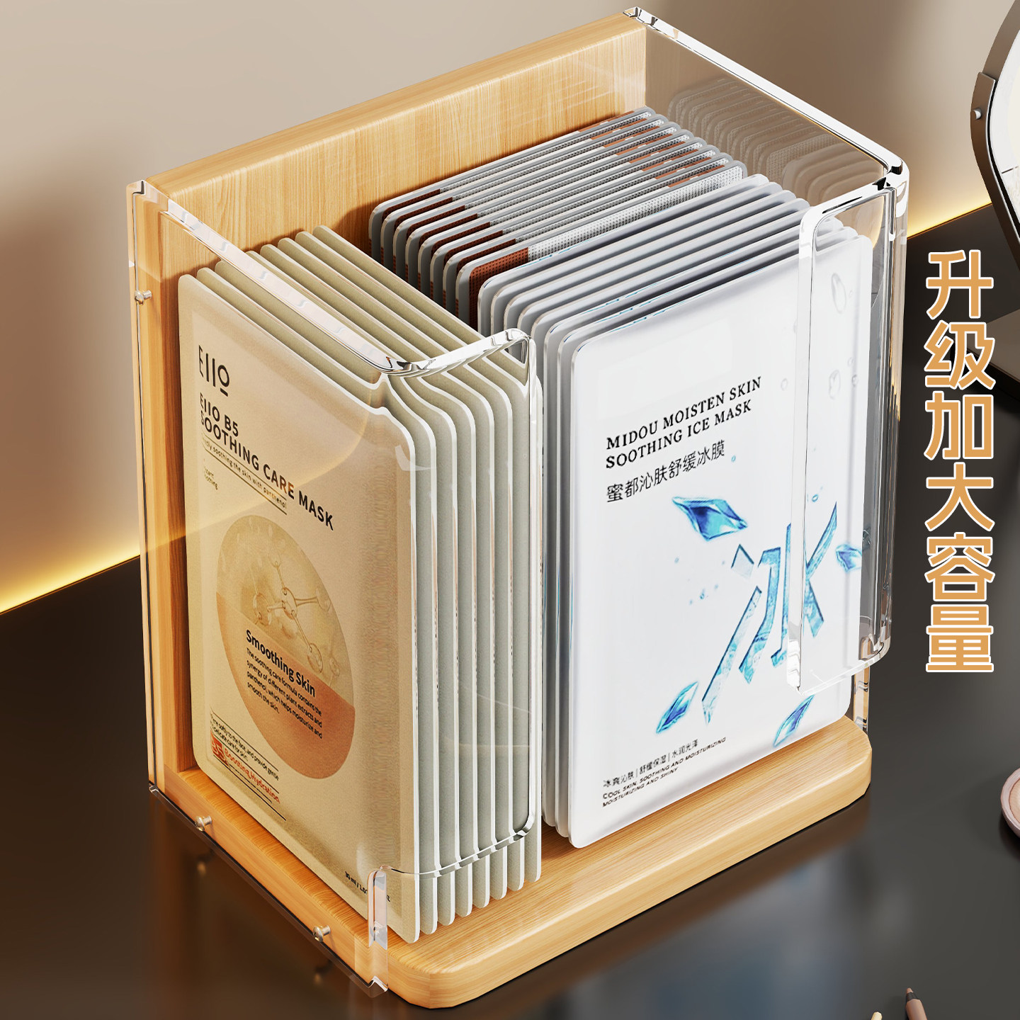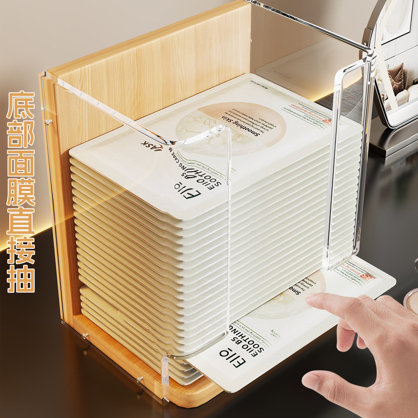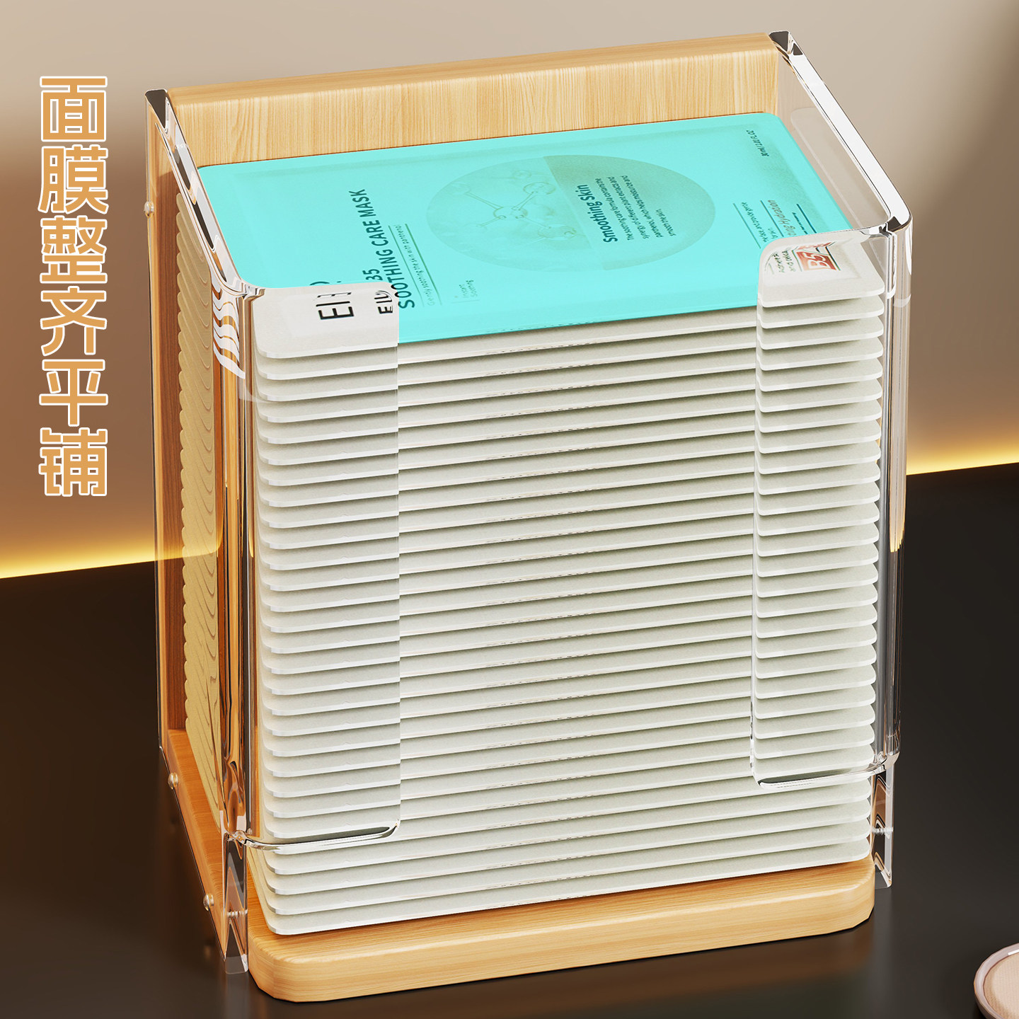 面膜收纳盒亚克力化妆品分格盒透明桌面大容量梳妆台护肤品置物架