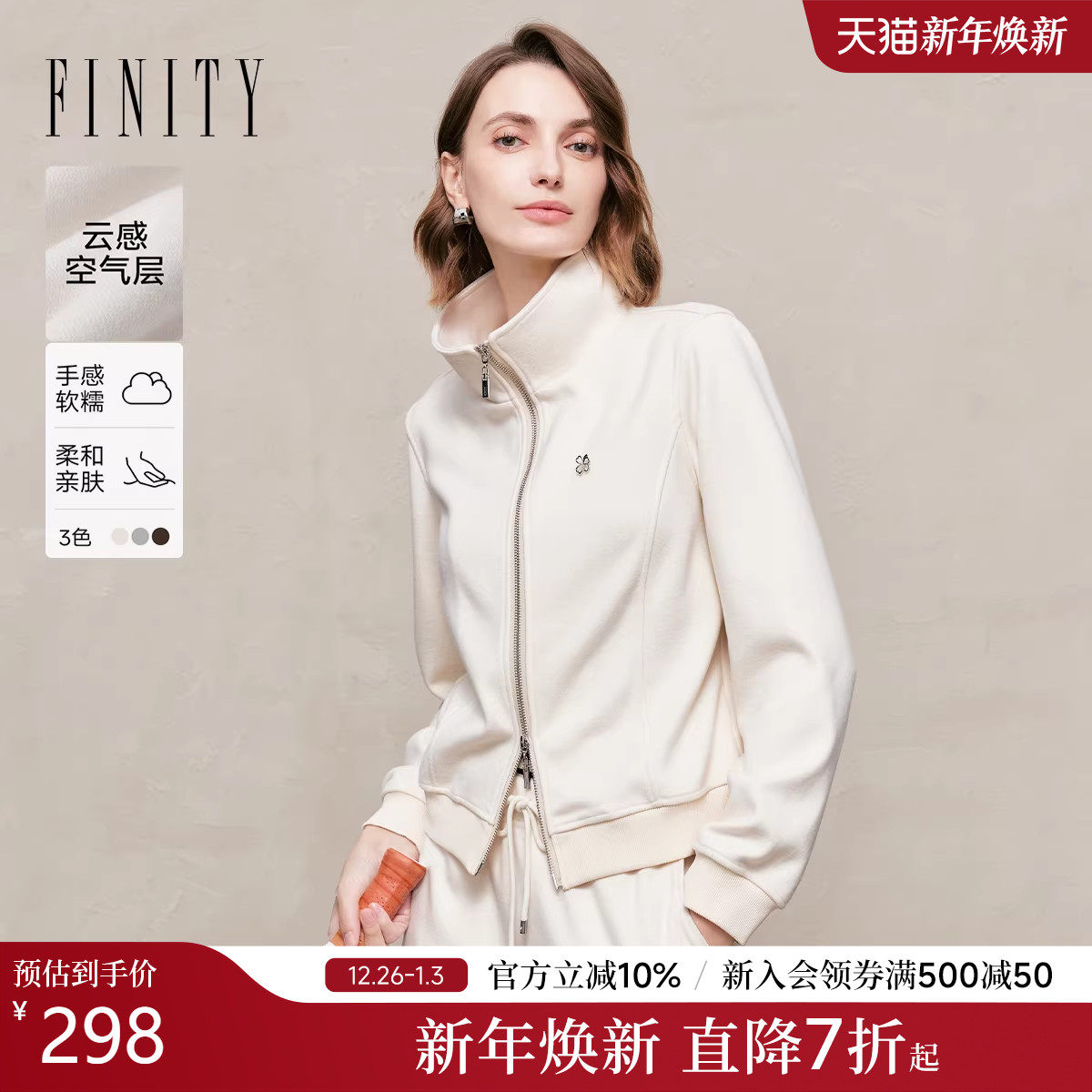 FINITY菲妮迪短外套2025年秋季新款简约双拉链时尚立领休闲上衣女