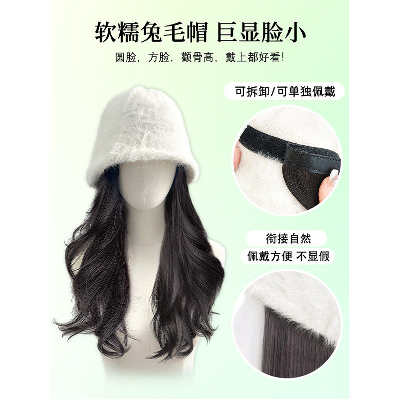 帽子假发一体女长发自然仿真发卷发全真人发时尚秋冬渔夫帽全头套