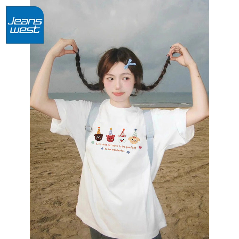 KCV真维斯白色纯棉短袖t恤女2025新款 夏休闲体恤小个子圆领上衣