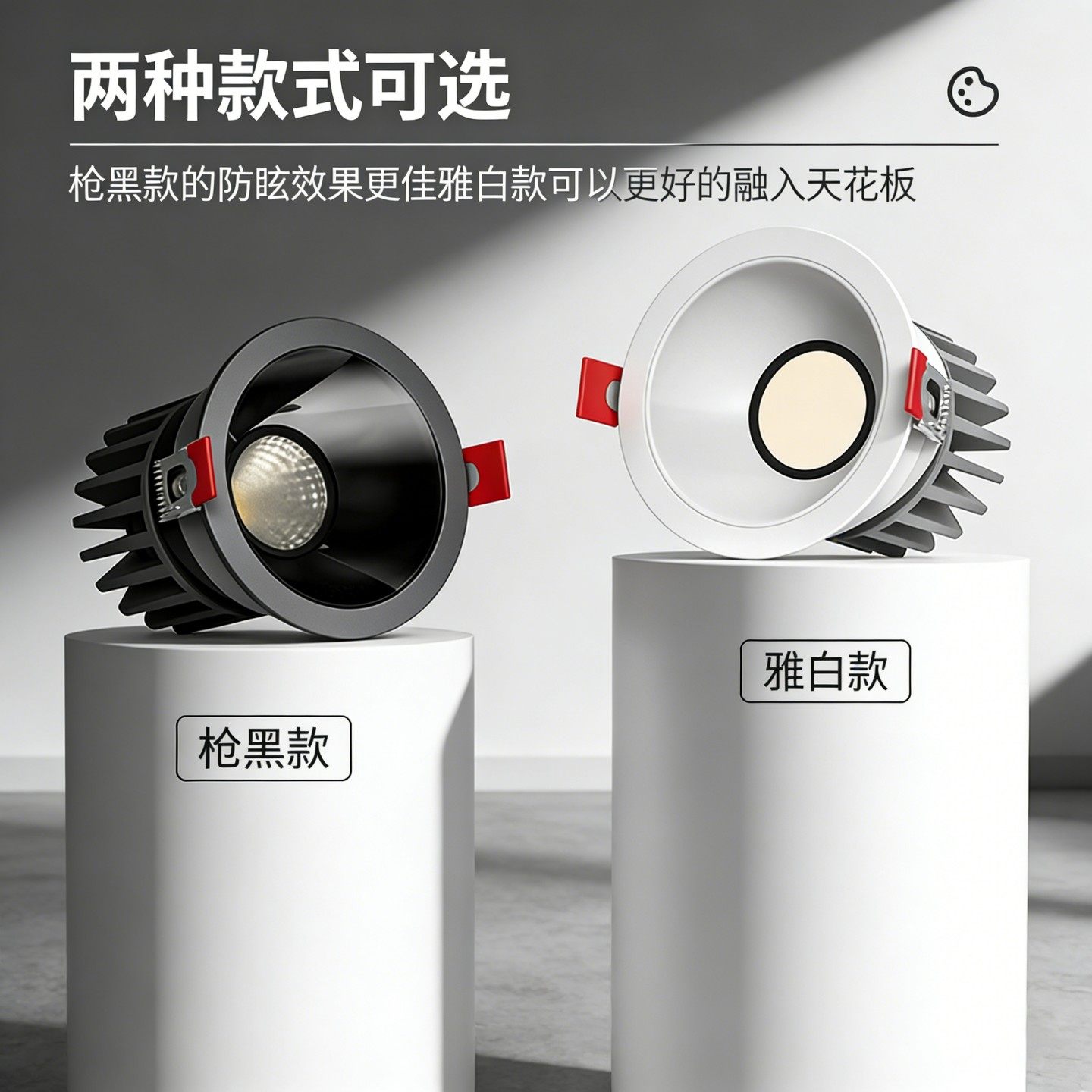 射灯LED天花灯小山丘嵌入式超亮家用COB筒灯7W可调商用聚光孔灯