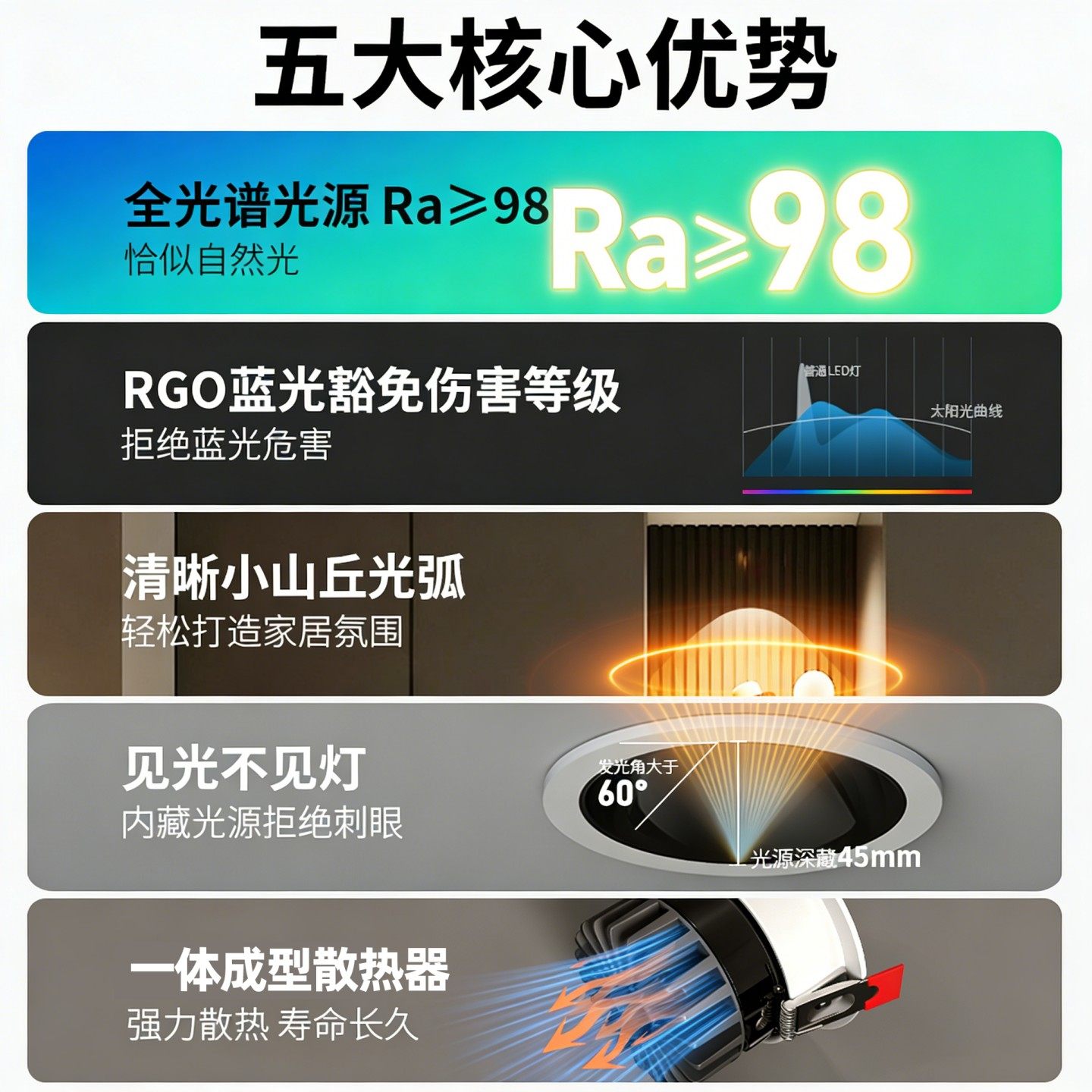 隐形弧面无边框护眼射灯小山丘嵌入式客厅筒射灯无主灯防眩洗墙灯