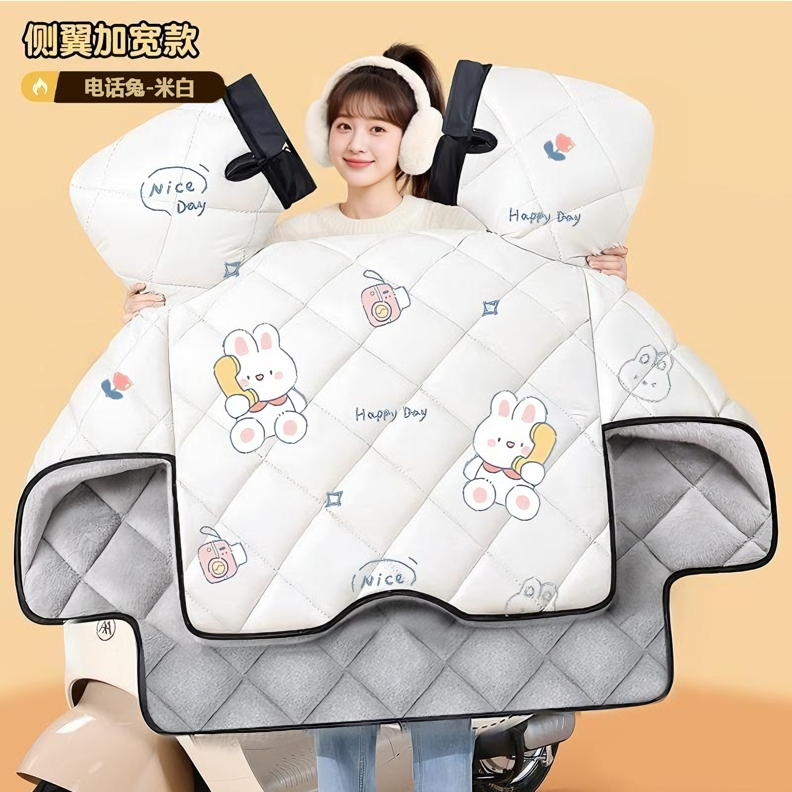 冬季电动摩托车挡风被卡通加绒保暖防寒防风罩侧翼春秋款双面防水