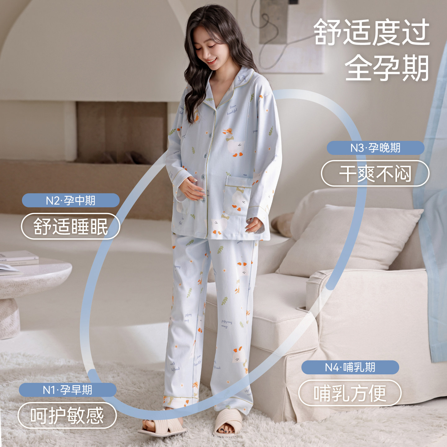 都市丽人纯棉月子服春秋季产后哺乳待产孕期喂奶孕妇睡衣家居服