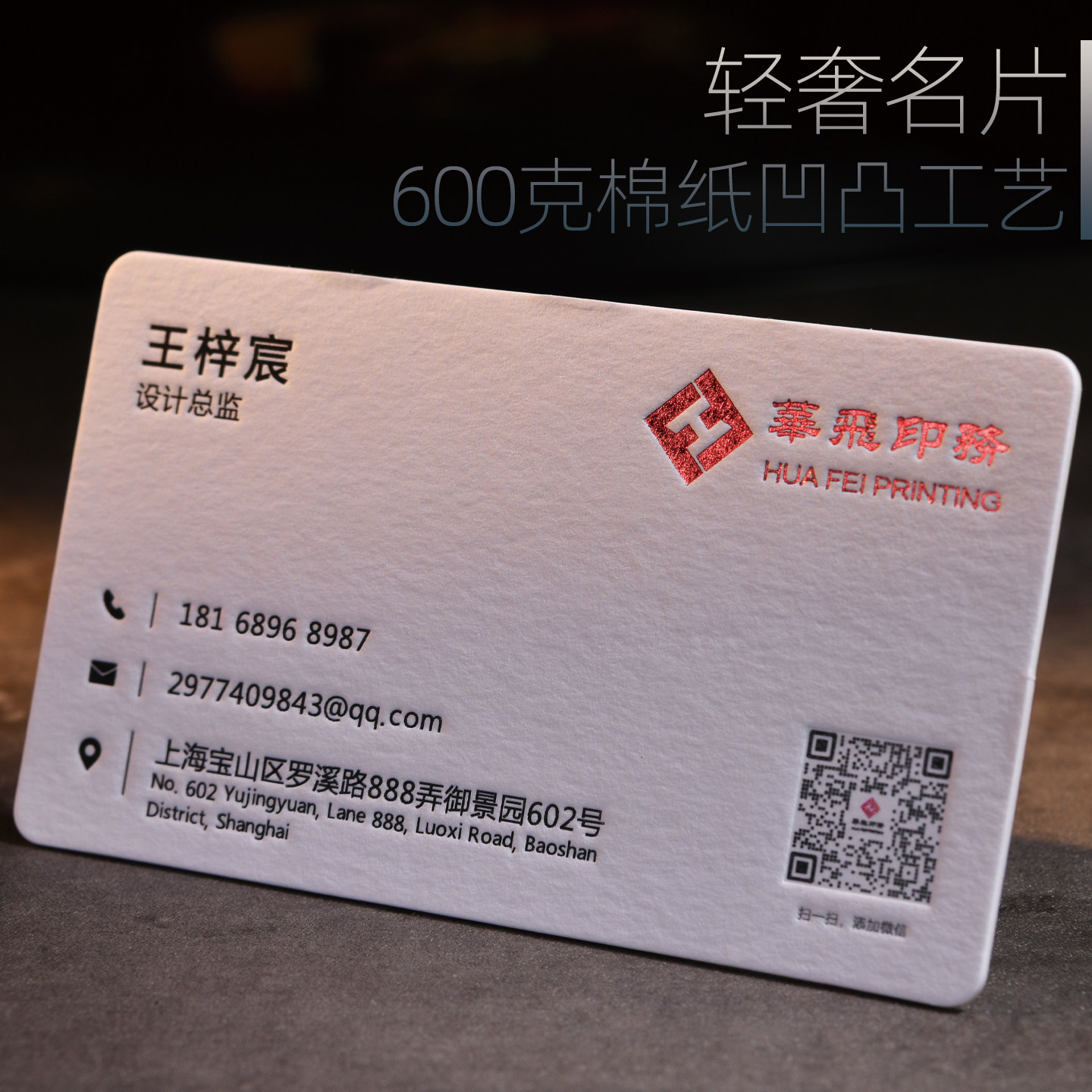 【凹凸感高级】600克棉纸名片定制 商务加厚高档名片印刷 烫金logo企业名片订做 棉纸明信片卡片