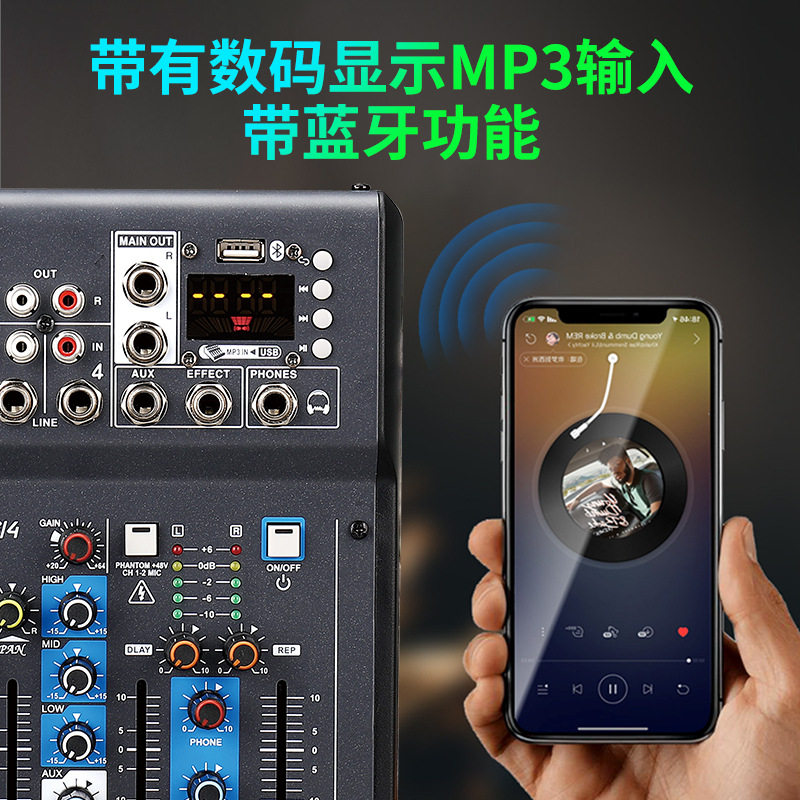 方格调音台4路舞台演出婚庆USB MP3 蓝牙N4/N6系列MINI音频混合器
