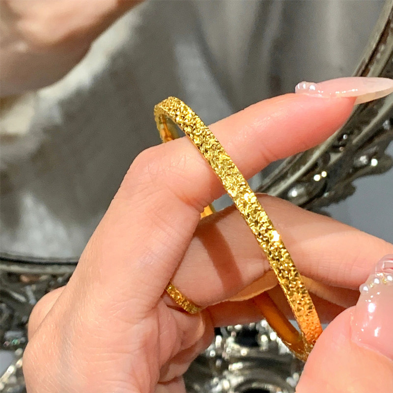 越南沙金碎碎冰手镯女款不掉色仿真黄金高端古法实心素圈手环戒指