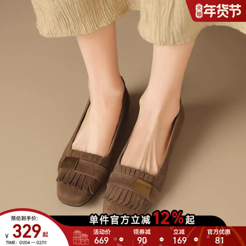 星期六百搭绒面乐福鞋方头低跟气质通勤鞋优雅法式复古纯色浅口单