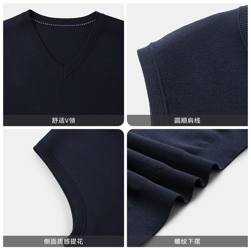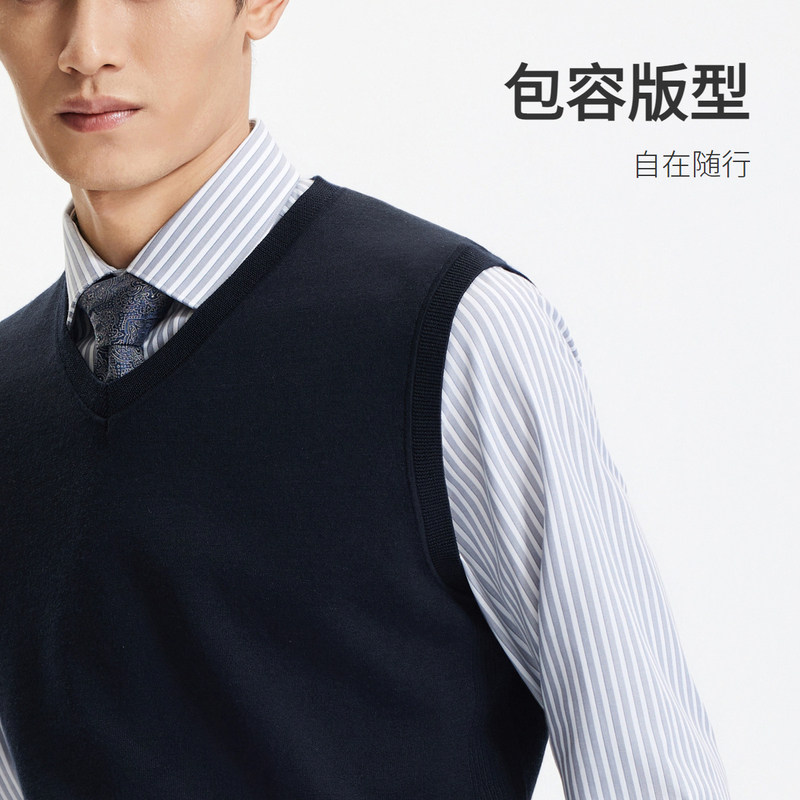【含羊毛】金利来秋冬新款背心马甲V领套头无袖毛衣针织衫男