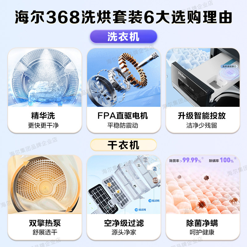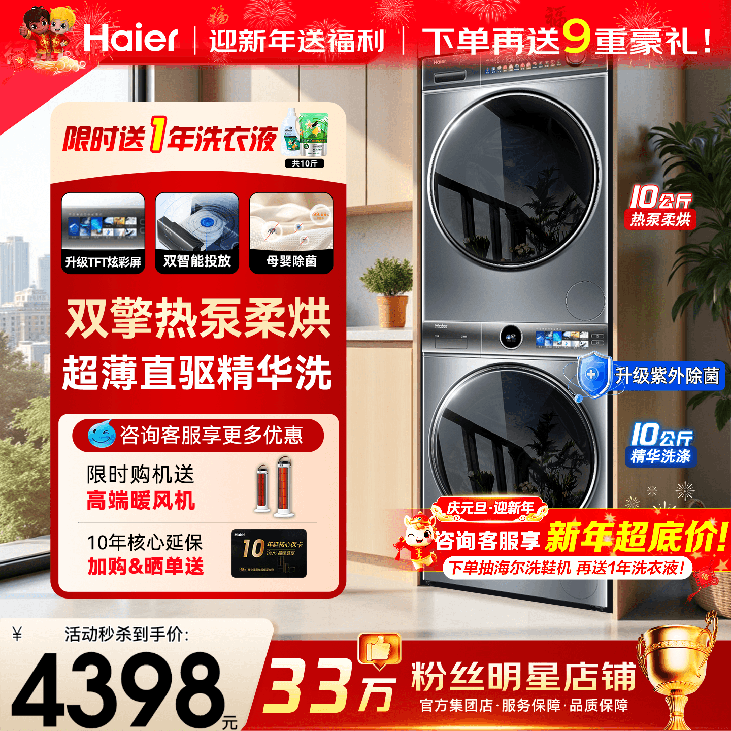 【云溪4.0】海尔洗烘套装386家用滚筒洗衣机10公斤变频热泵烘干机