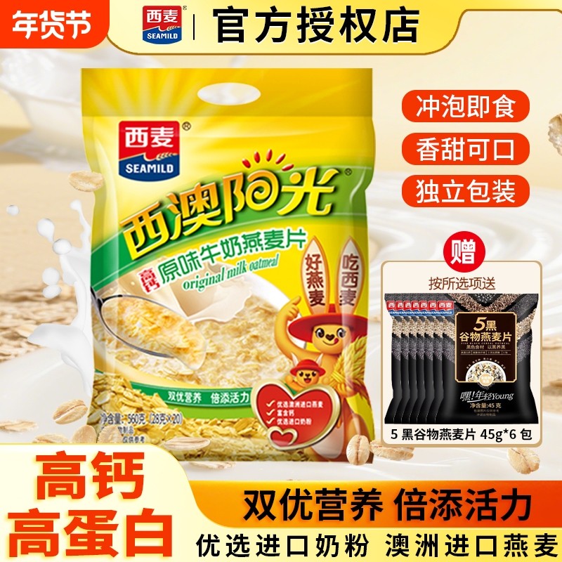 西麦原味/核桃/红枣高钙牛奶燕麦片560g营养早餐即食冲饮冲泡饮品
