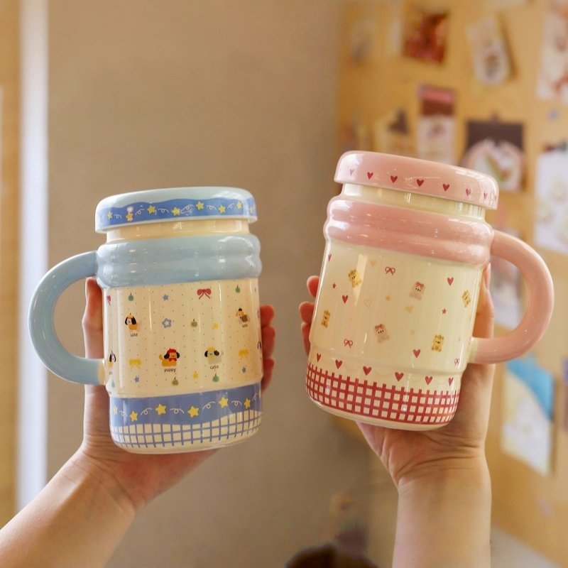 陶瓷马克杯带盖女生高颜值大容量随手杯情侣喝水杯子可爱闺蜜礼物