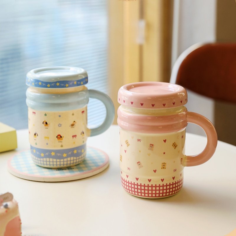 趣皿可爱马克杯卡通带盖带勺陶瓷杯情侣水杯咖啡杯子送女生伴手礼