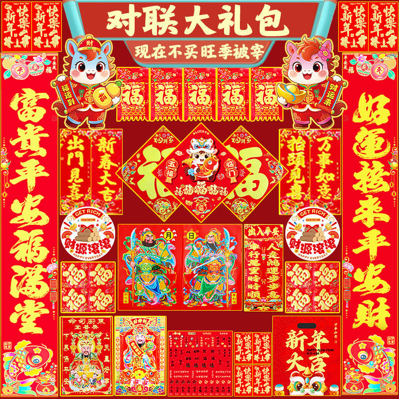 新春马年新年春联过年对联大礼包烫金年画门贴纸套装大全春节大门
