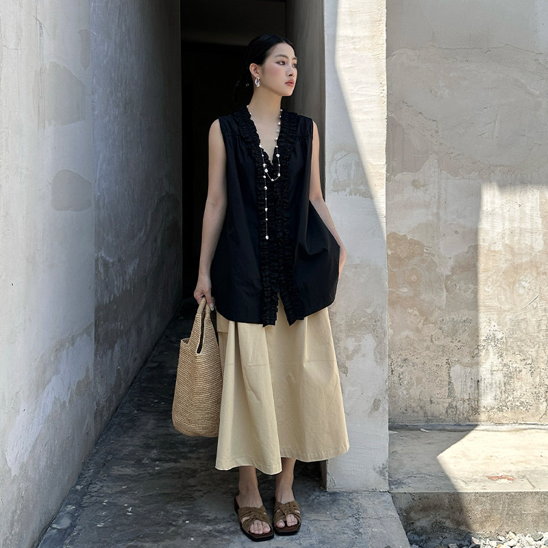 Petit Bari极简设计茧型纸袋裙半身裙 百搭A字裙中长款
