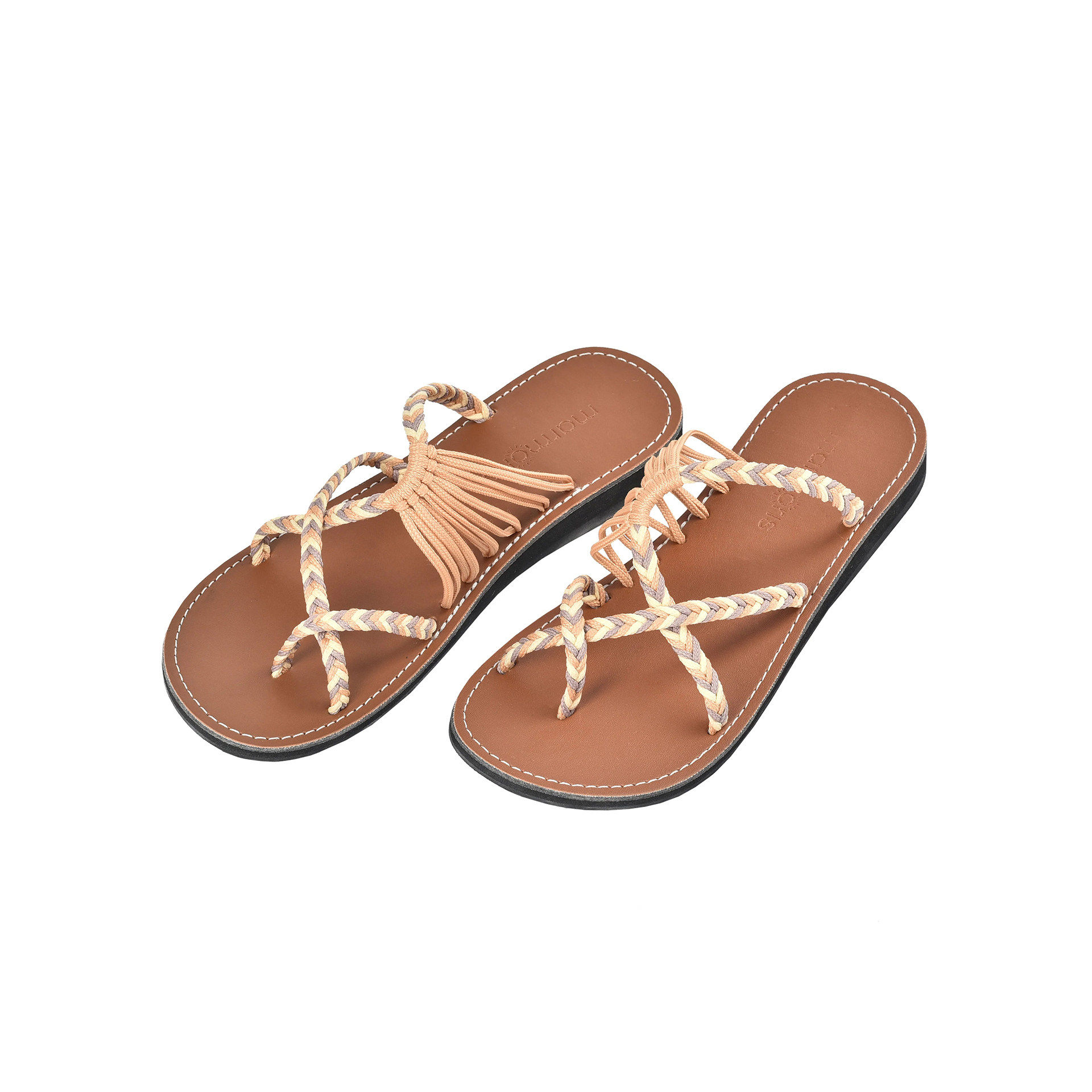 Marmoris 2026夏季新款泰国彩色编织拖鞋露趾平底凉鞋外穿凉鞋