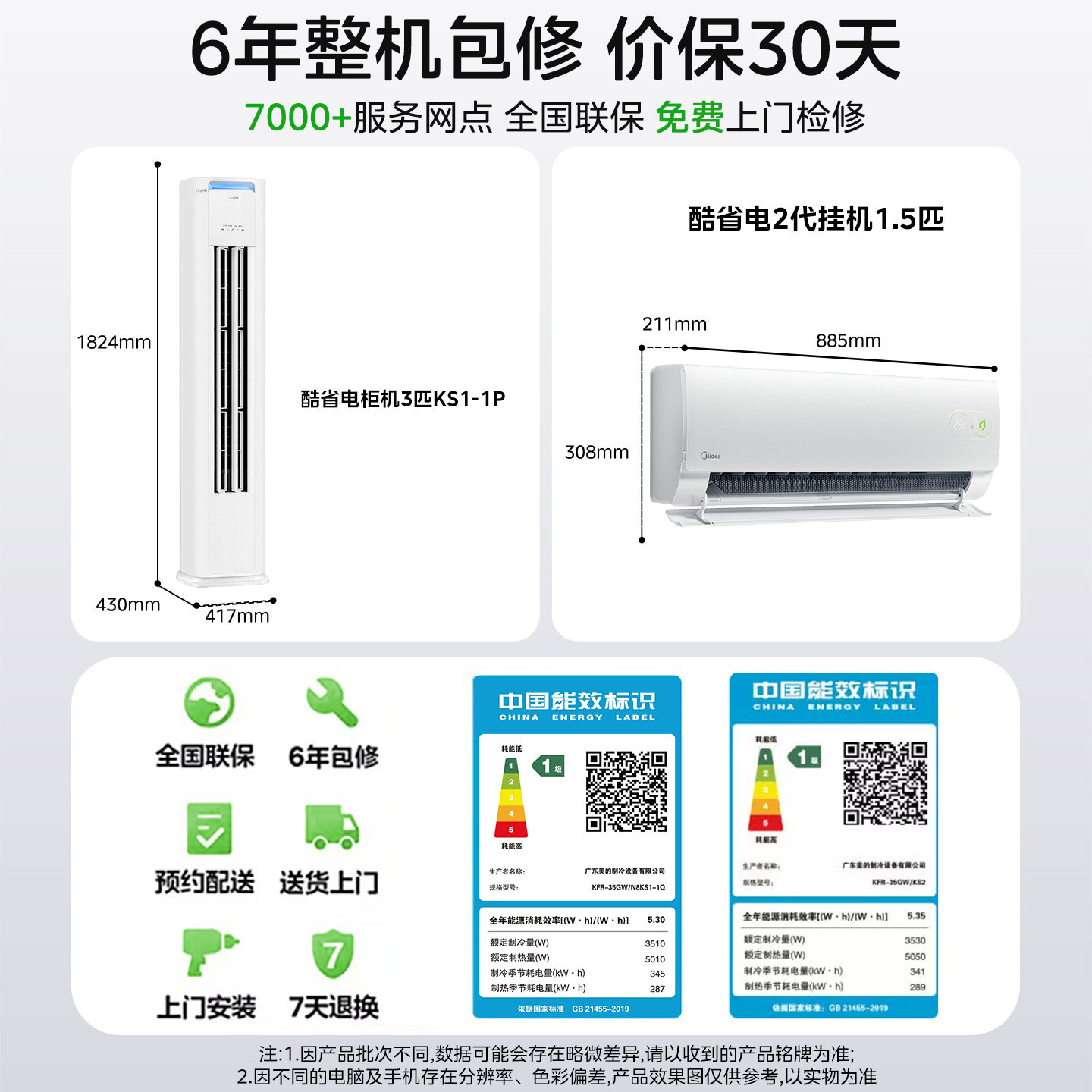 美的酷省电空调套装柜挂机新一级能效家用三室一厅两室官方旗舰店