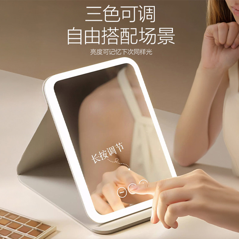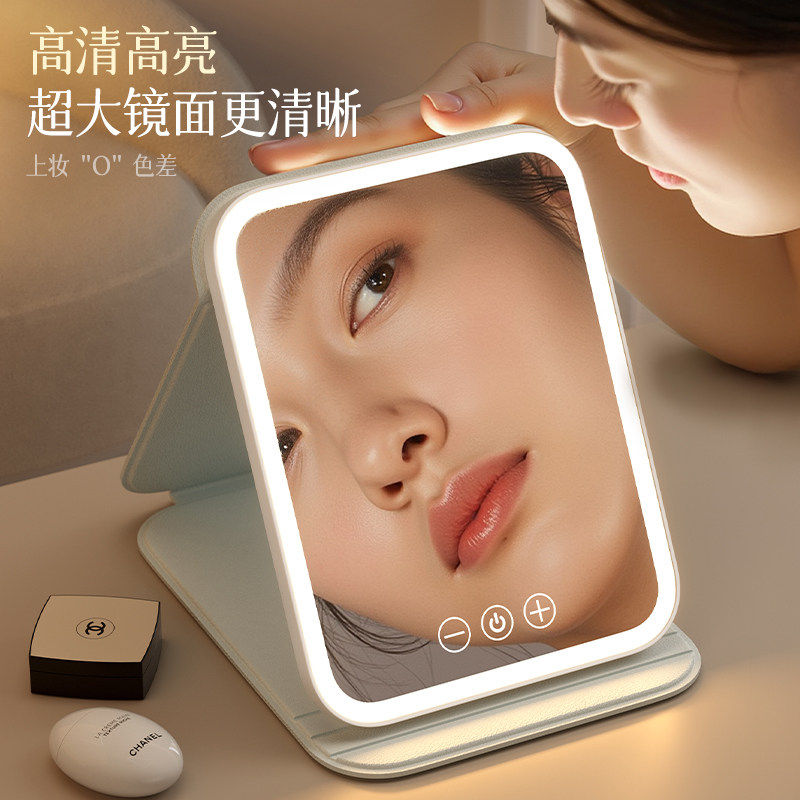 led化妆镜镜子带灯折叠梳妆台智能台式便携随身学生宿舍桌面回购
