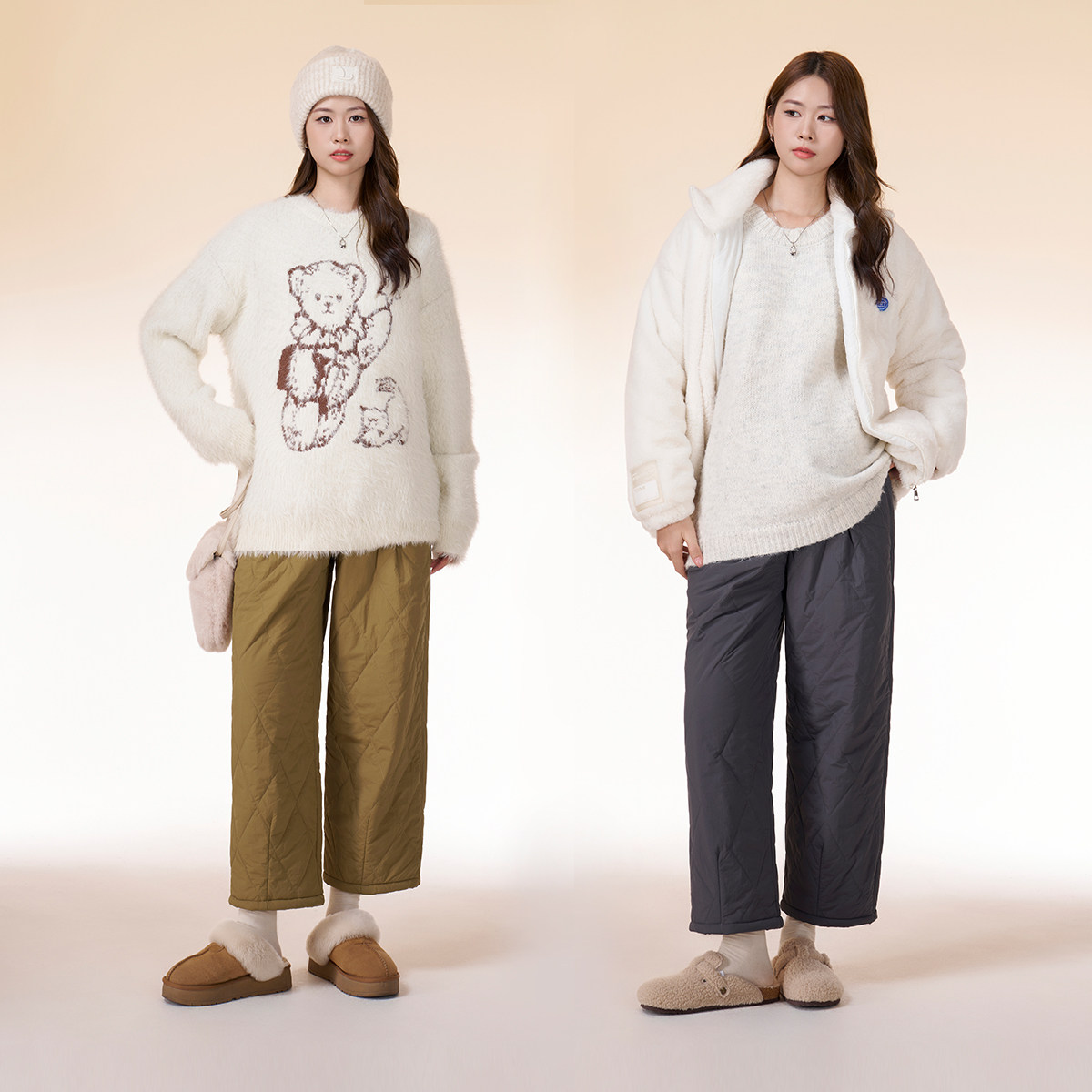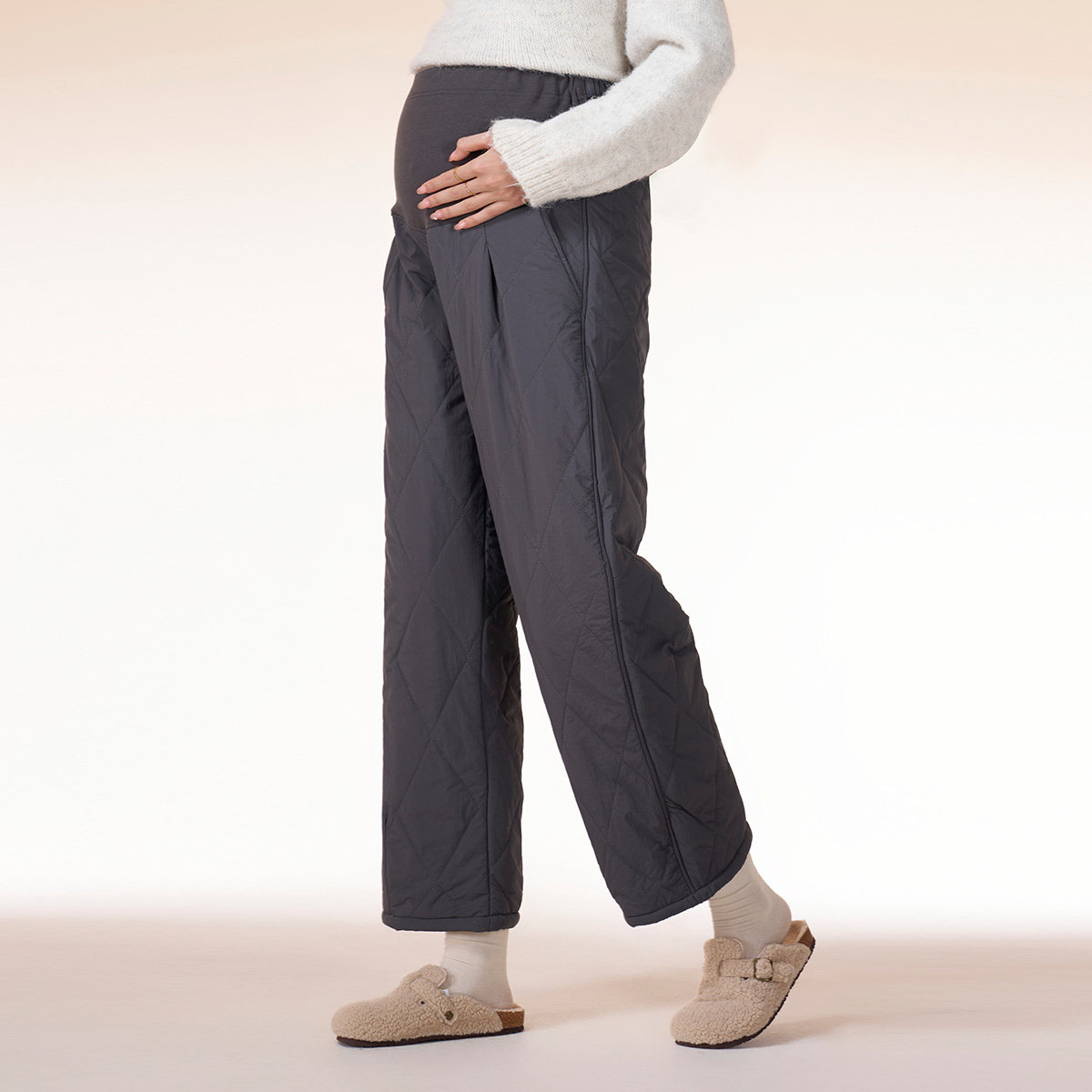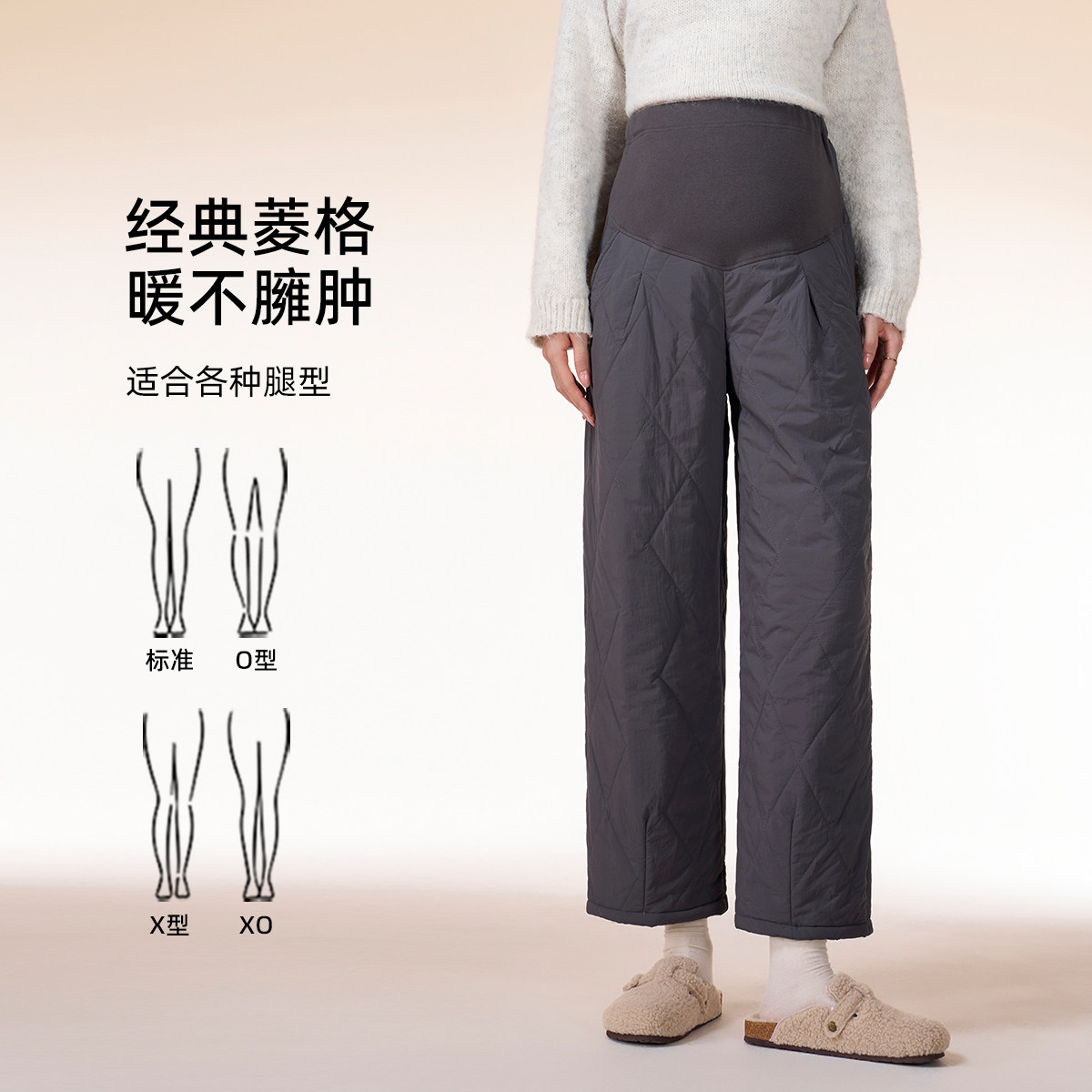 孕妇裤子秋冬款小个子仿羽绒阔腿裤冬季加绒加厚保暖棉裤休闲裤子