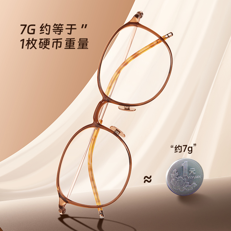 钛合金镜腿 茶色素颜镜框