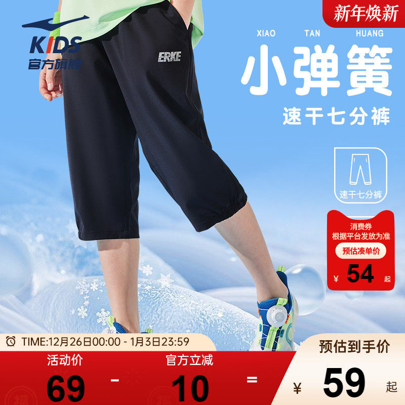鸿星尔克儿童速干七分裤薄款透气运动裤子夏季凉感中大童梭织短裤