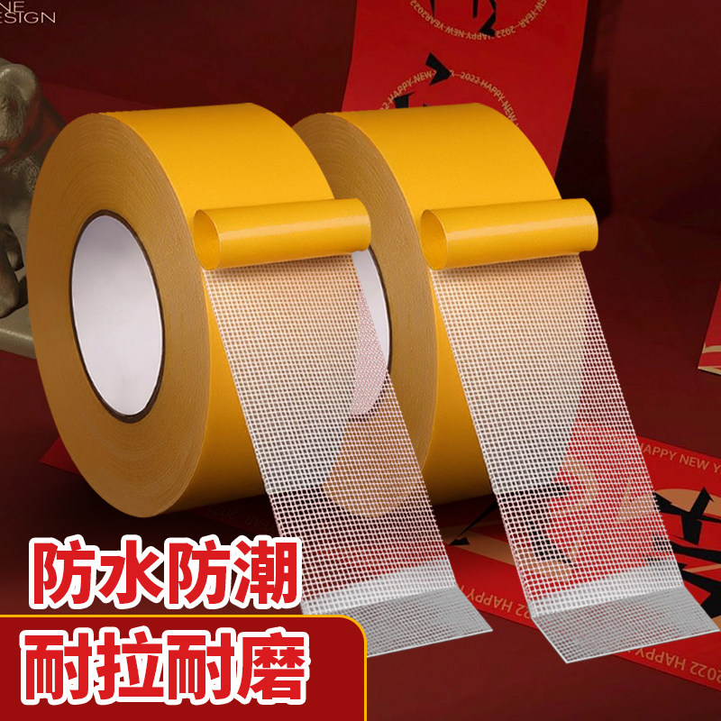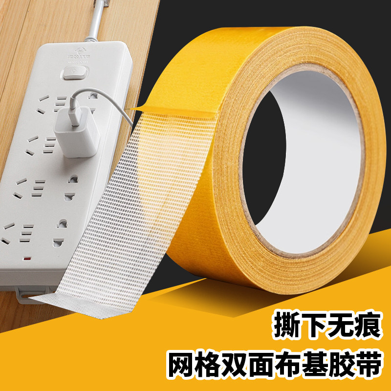 布基网格双面胶带高粘度强力固定墙面地毯防滑垫春联福字胶布车用防水无痕婚庆气球魔力粘胶贴免打孔手撕胶条