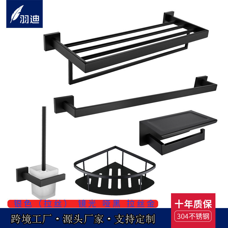 工程不锈钢卫浴挂件套装浴室置物架毛巾杆方形浴巾架毛巾架套装