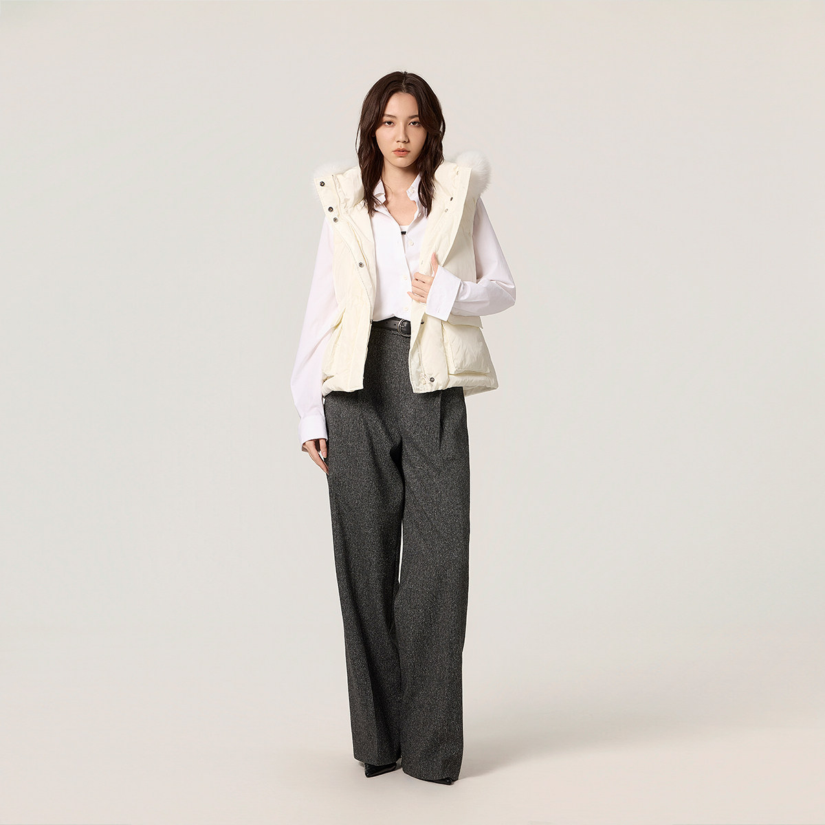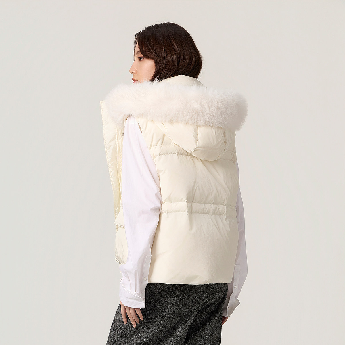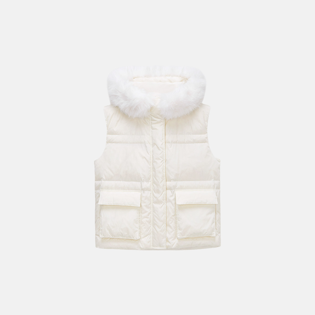 【季末折扣】欧时力可拆卸毛领羽绒马甲外套背心保暖2025秋冬新品