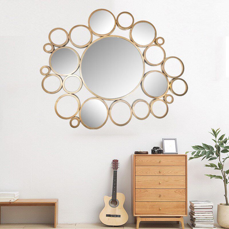 热销金属圆镜子壁饰壁挂客厅餐厅墙面装饰品铁艺镜子挂饰样板房装