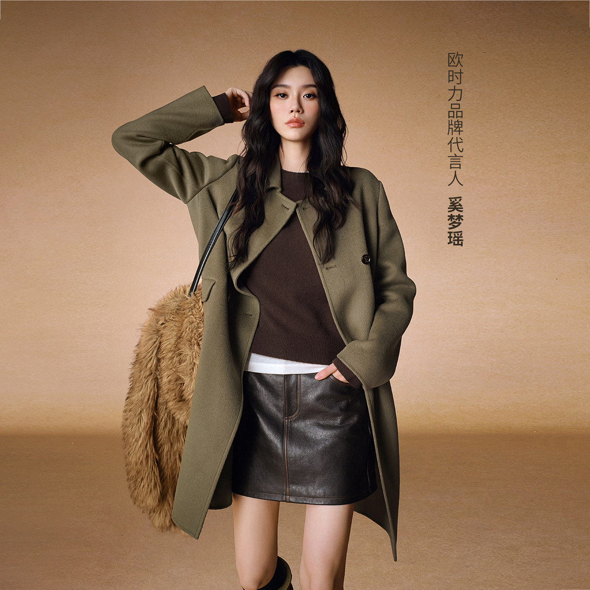 【特享折扣】奚梦瑶同款OCHIRLY欧时力 纯羊毛双面呢大衣外套25冬