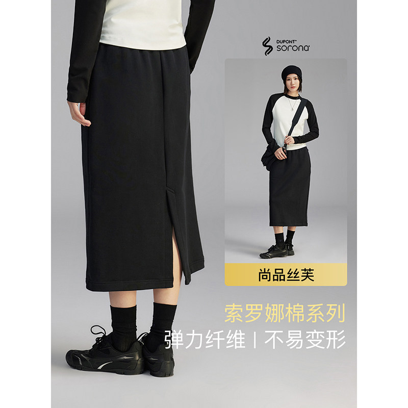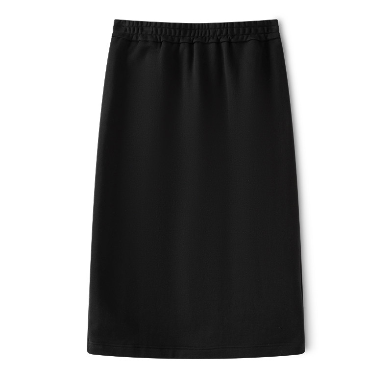 云上生活【漫游裙】松紧腰后开叉索罗娜薄款黑色半身裙春秋女下装