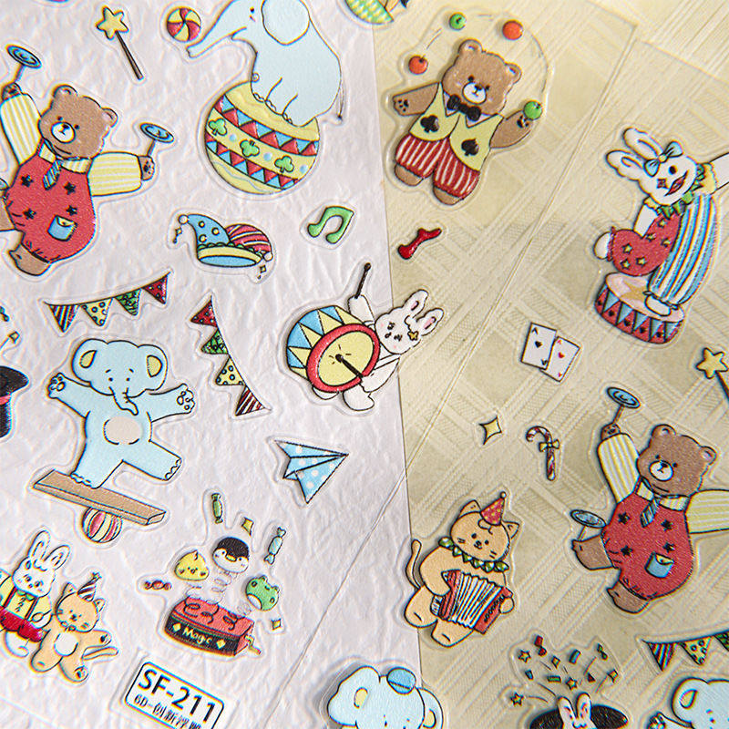 Sky网红爆款马戏团萌熊果冻贴纸定制立体浮雕卡通CCD水杯平板装饰