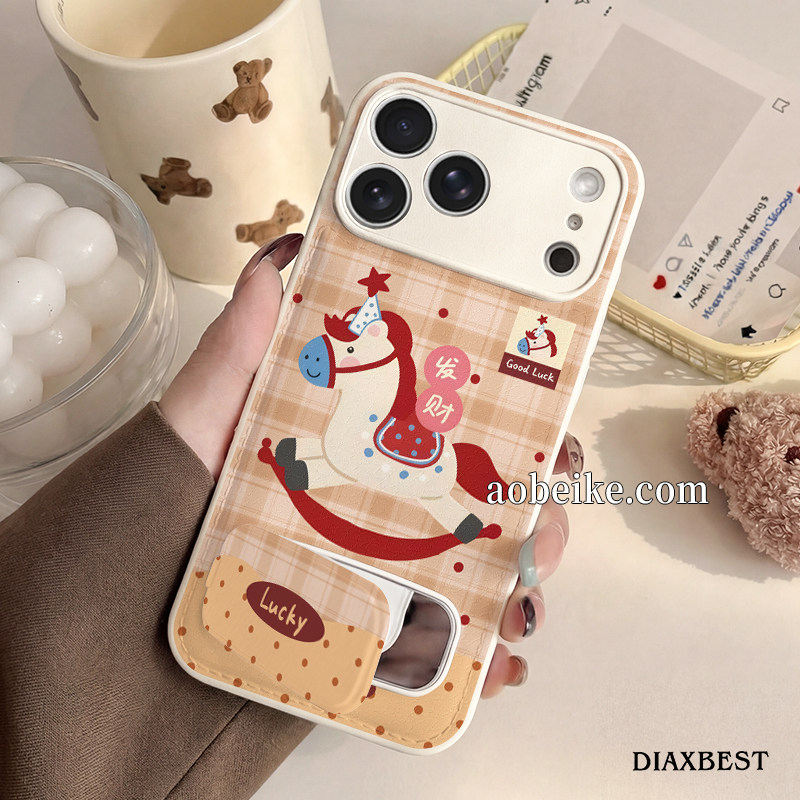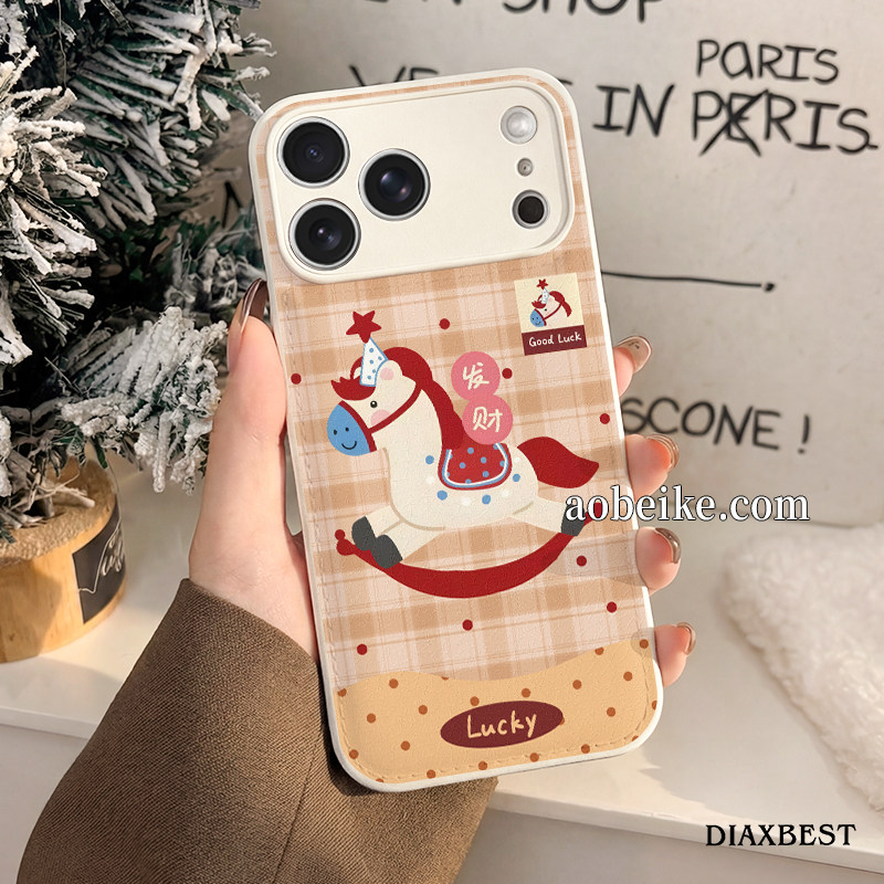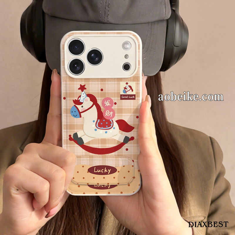 格子小马适用于苹果17promax手机壳iPhone16Pro新年款ip15plus秋冬鼓包iP14镜子支架13/12全包防摔11女保护套