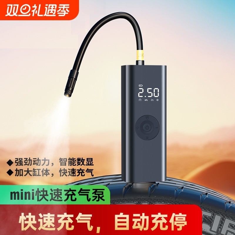 自行车打气筒电动便携快速冲气家用通用公路山地车小型车载充气泵