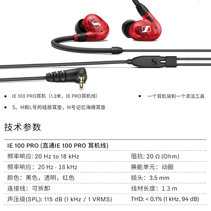 【自营】SENNHEISER/森海塞尔IE100Pro入耳有线监听噪耳机挂国行